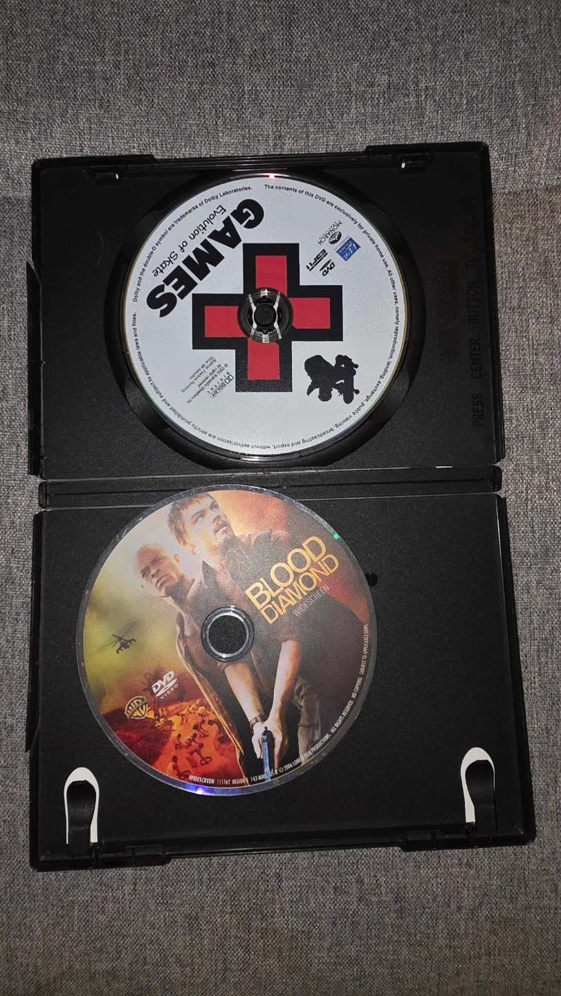 Two DVDs are included: Blood Diamond (Widescreen) and Games Evolution of Skate. Both discs are in a standard DVD case.