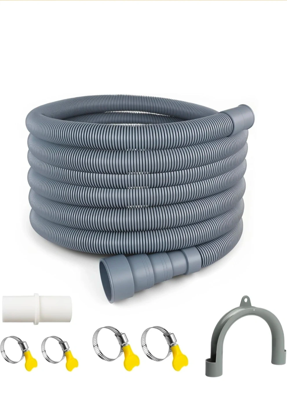 Drain Hose Kit: Washing machine drain hose extension kit contains a 3.5m drainage pipe, a white extension joint, a U-Bend bracket and 4PCS steel hose clamps