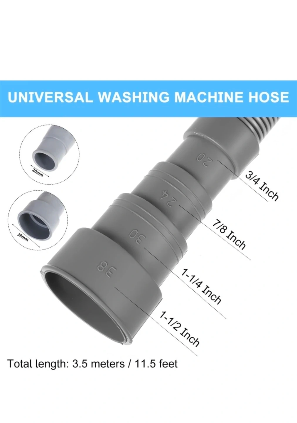 Universal: Washer plastic hose is in length of 11.48 feet, features 4 different outlet diameter from 1-1 / 5" (30 mm) for universal fit most of washing machine