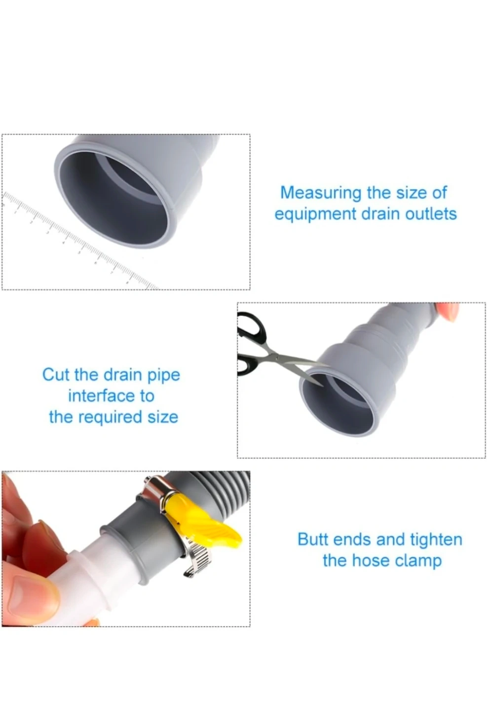 Extension Hose: Drainage hose extension kit for washing machine is equipped with an extension adapter and clamps for extending the drain hose conveniently to reach drainage area