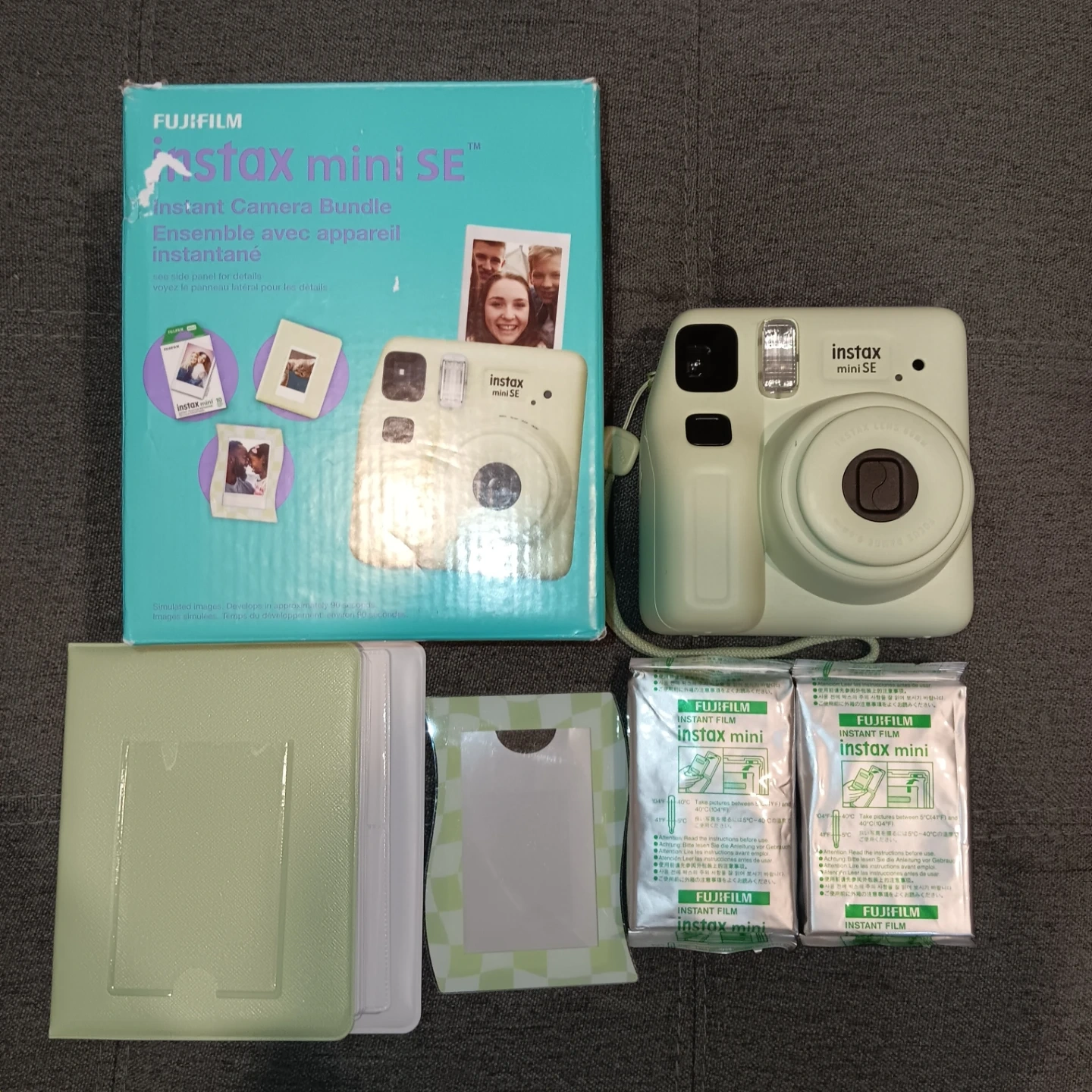 This Fujifilm Instax Mini SE instant camera bundle comes in a light green colour. It includes the following: