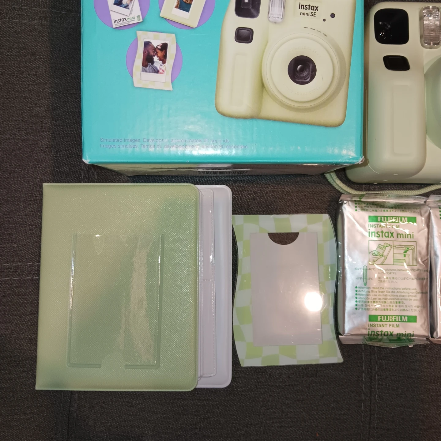 This Fujifilm Instax Mini SE instant camera bundle comes in a light green colour. It includes the following: