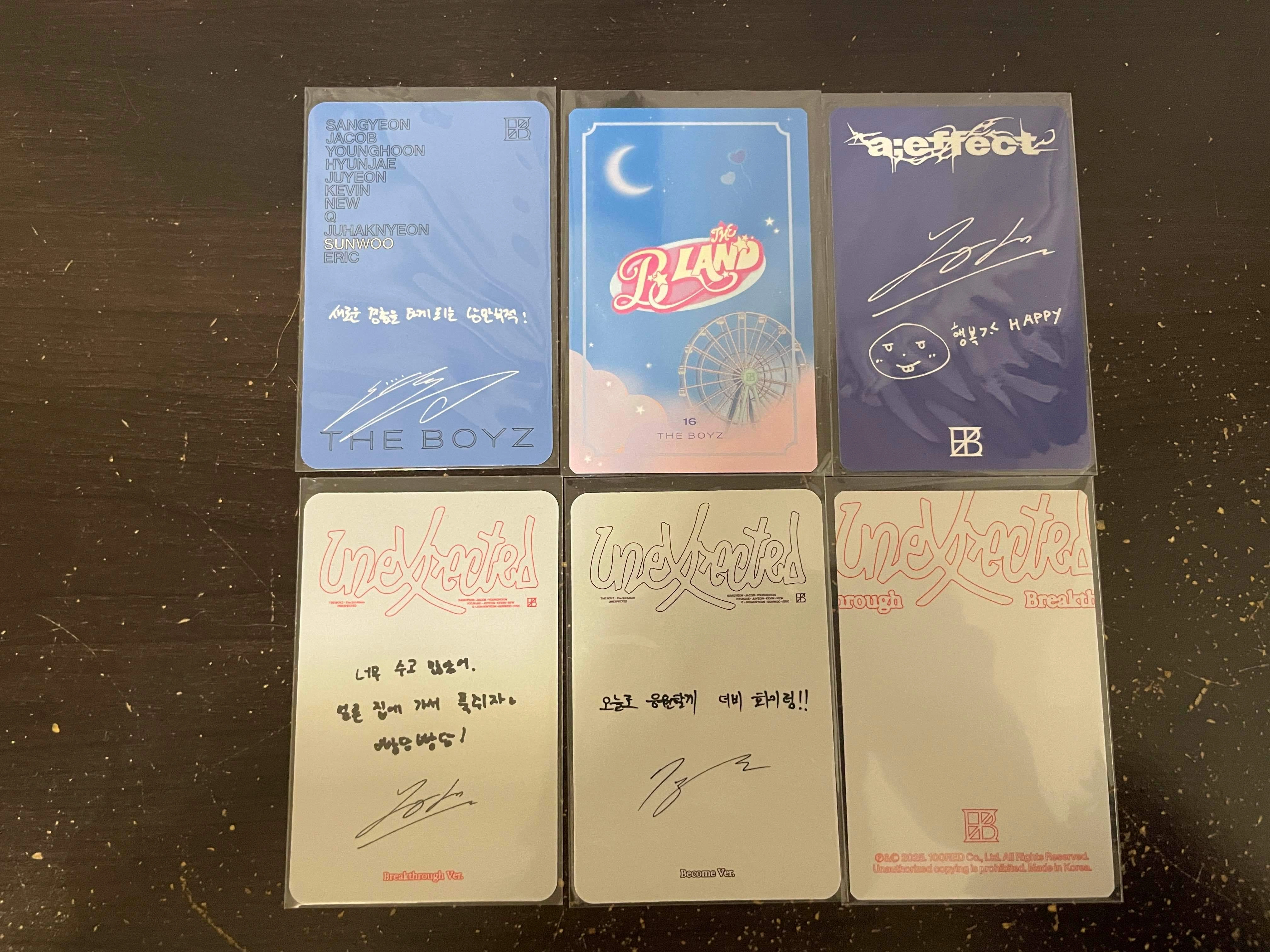 Selling tbz collection! ⇨ photocards: 1. Unexpected Begin Ver Sunoo 2. TheB Land trading card Juyeon 3. a:effect Flow Ver. Younghoon 4. Unexpected Breakthrough Ver. Younghoon 5. Unexpected Become Ver. Juyeon 6. Unexpected Pop-up trading card Hyunjae ⇨ Juyeon 10cm doll: Mamuljju(마물쭈) + stickers I might have written the wrong album/member names; im not very familiar with tbz (this was my sister's collection 😅) everything is in perfect condition, feel free to ask for more detailed pictures! [can meet up on University of Toronto SG campus, or Lawrence-Midland intersection in scarborough] I also have other k-pop merch and albums, dm if interested! 🩵