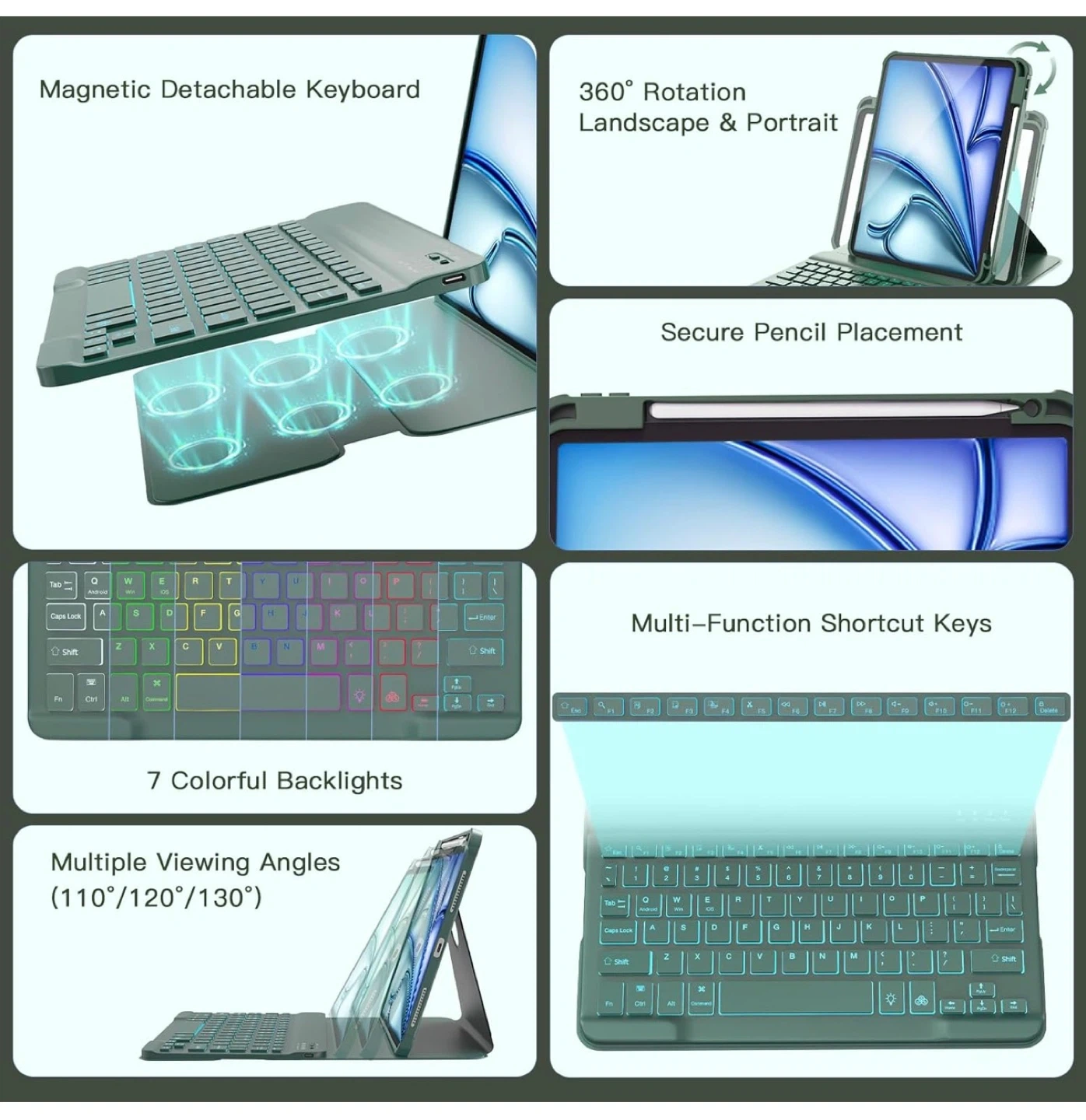 • Device Compatibility: Only compatible with iPad Air 11-inch (M3) 2025, iPad Air 11-inch (M2) 2024, iPad Air 5th Gen 10.9-inch 2022, and iPad Air 4th Gen 10.9-inch 2020.