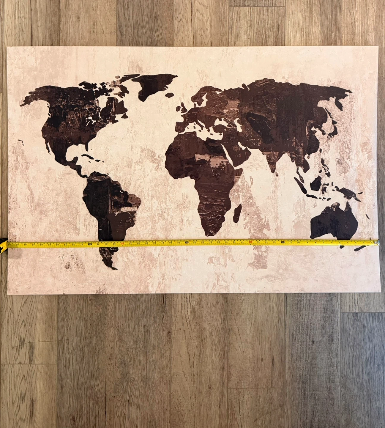 This world map decorative painting adopts a retro style design. With a light beige background and a dark brown map, it is simple yet artistic.