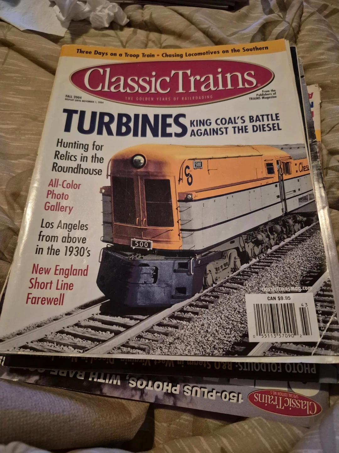 This is the Fall 2004 issue of Classic Trains magazine. It features articles on "Turbines: King Coal's Battle Against the Diesel", "Hunting for Relics in the Roundhouse", and "New England Short Line Farewell". The magazine includes an all-color photo gallery and content from the 1930s. It is published by the publishers of TRAINS Magazine.