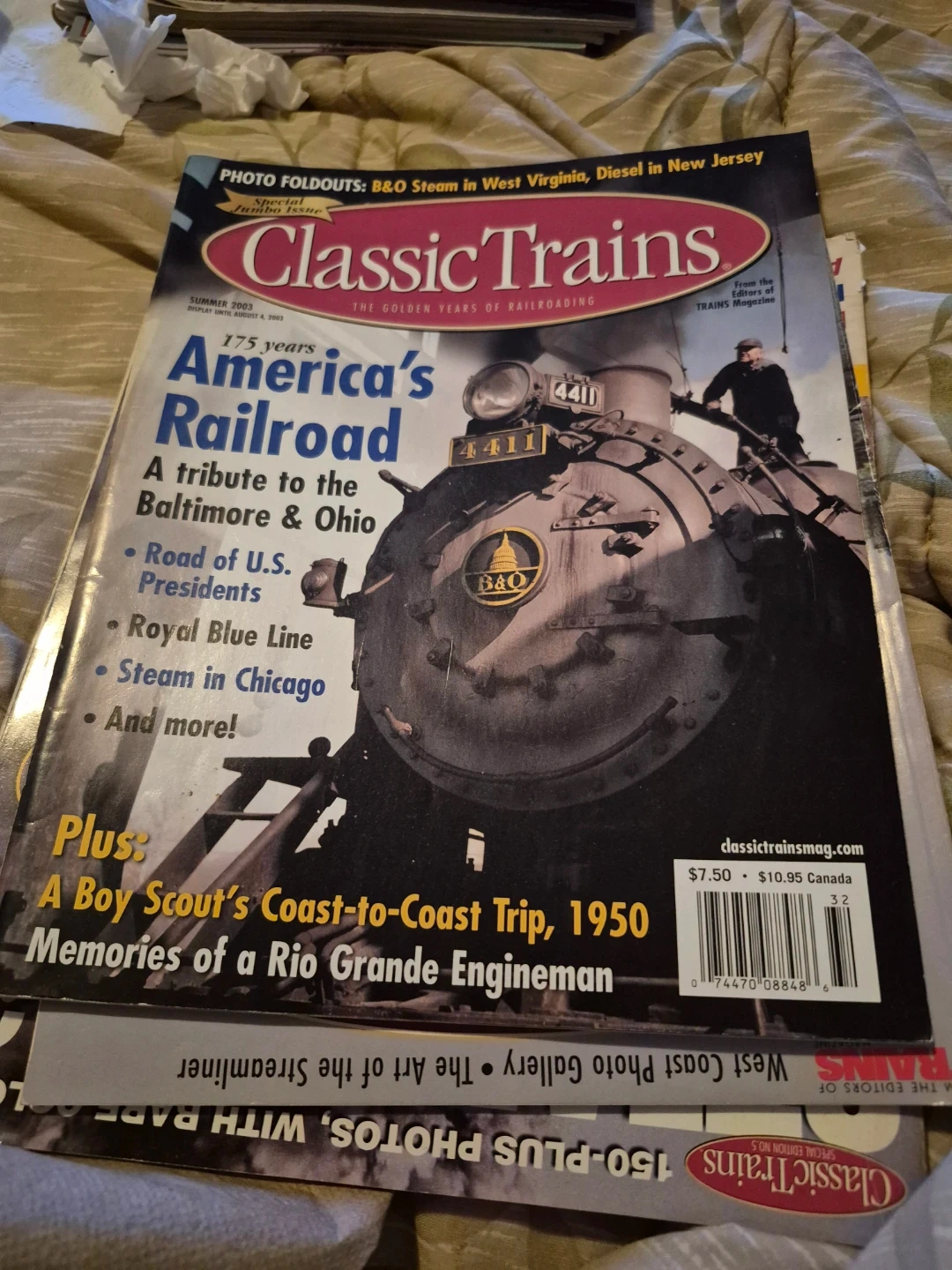 This is the Summer 2003 issue of Classic Trains Magazine. It features articles on "America's Railroad", a tribute to the Baltimore & Ohio, and stories about a Boy Scout's trip and a Rio Grande Engineman. Topics include the Road of U.S. Presidents, the Royal Blue Line, and steam in Chicago.