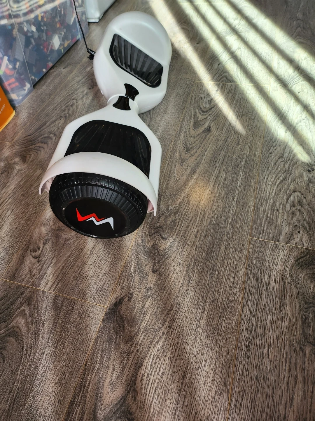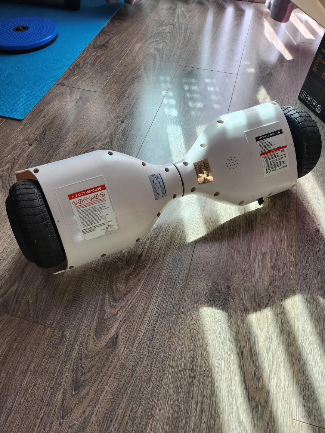 This is a white WEELMOTION hoverboard. It comes with a black carry bag and its original box. Includes charger. It also includes a Bluetooth feature so you can listen to music while riding😎