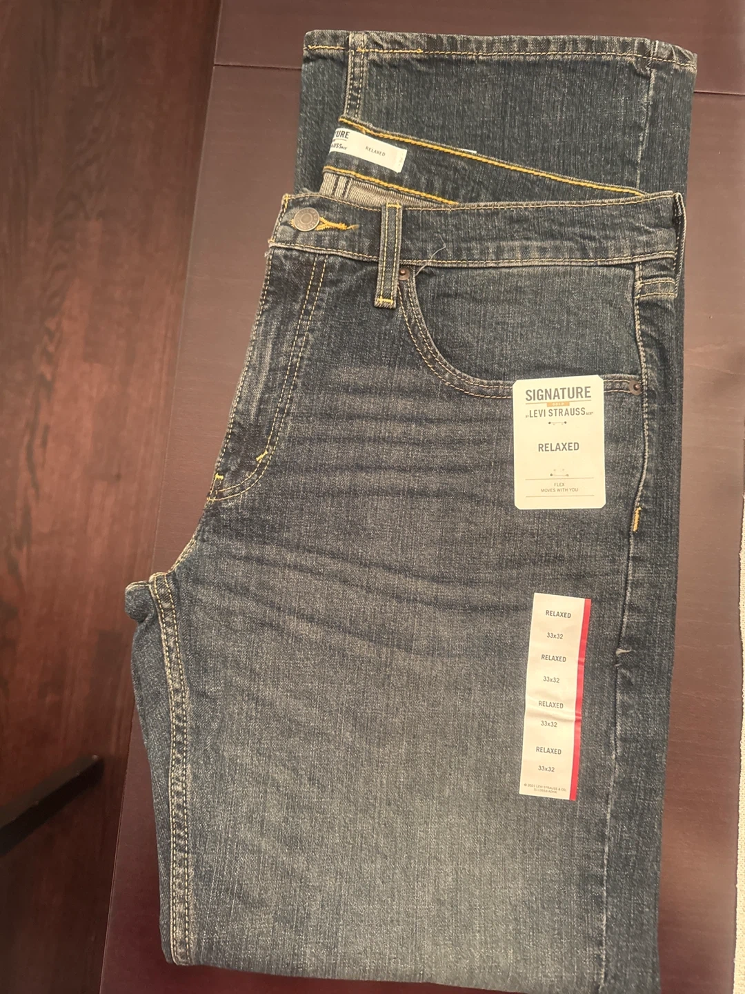 Signature by Levi Strauss & Co. relaxed fit denim jeans. Size is 33x32. These jeans are in new condition with tags attached.