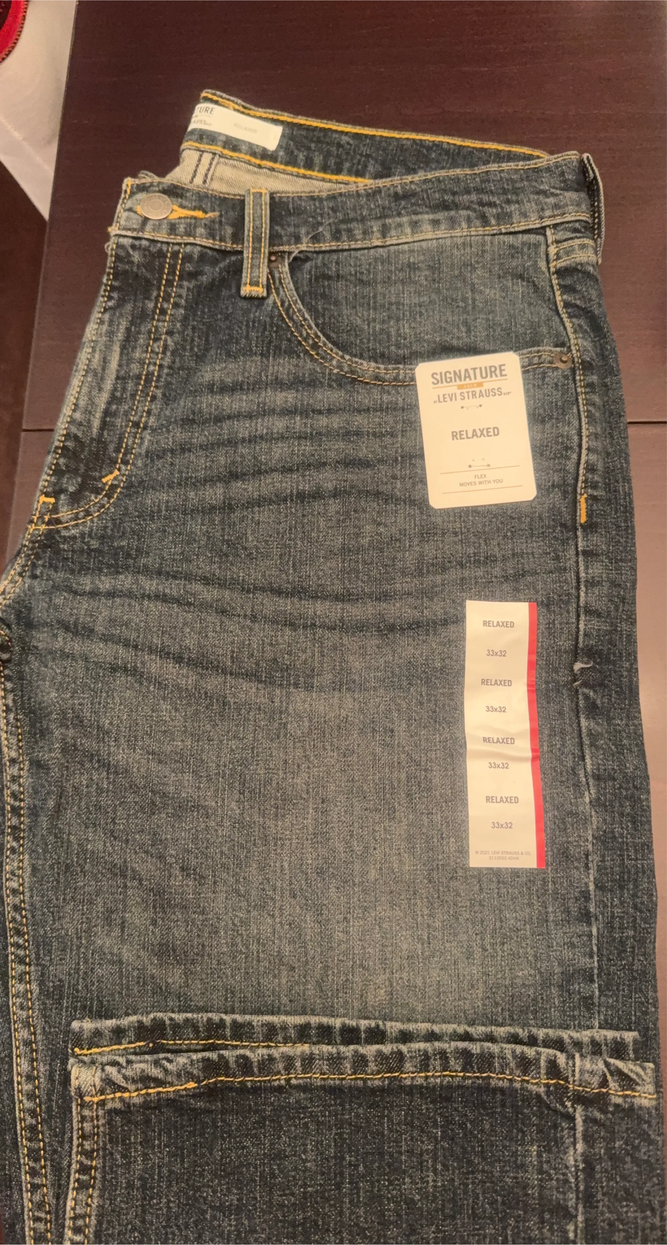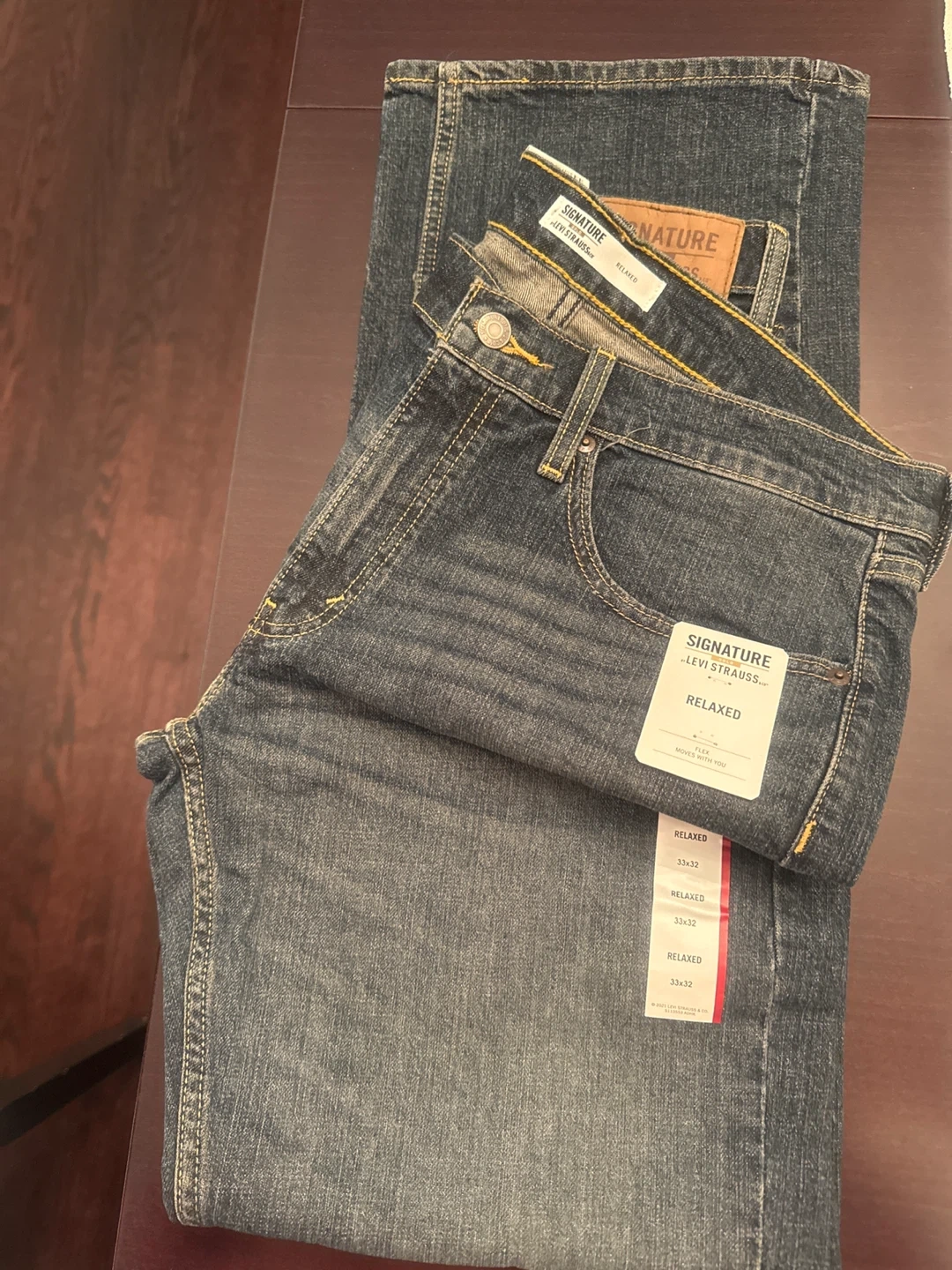 Signature by Levi Strauss & Co. relaxed fit denim jeans. Size is 33x32. These jeans are in new condition with tags attached.