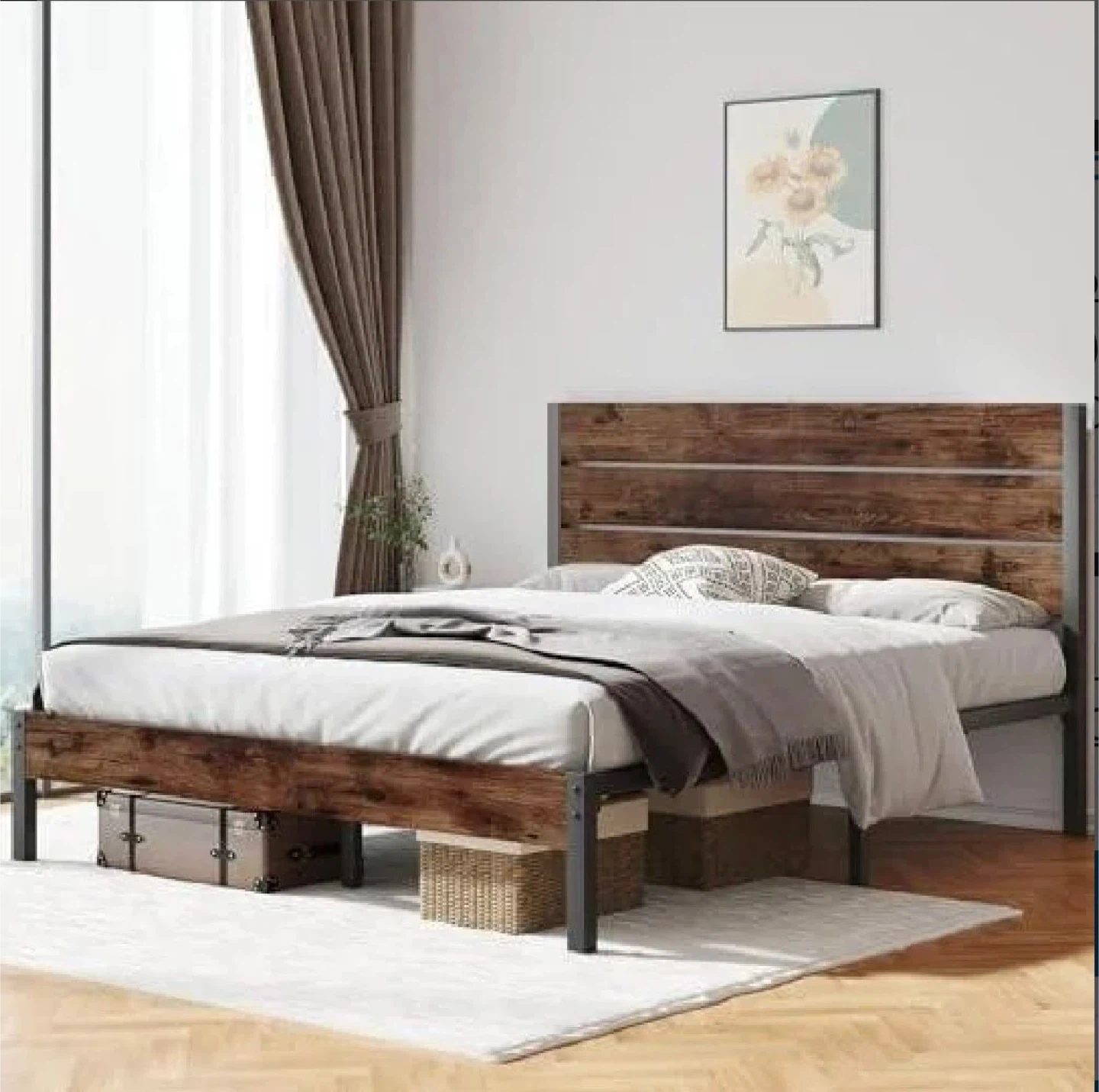 Queen Industrial Metal Bed Frame– Rustic Brown