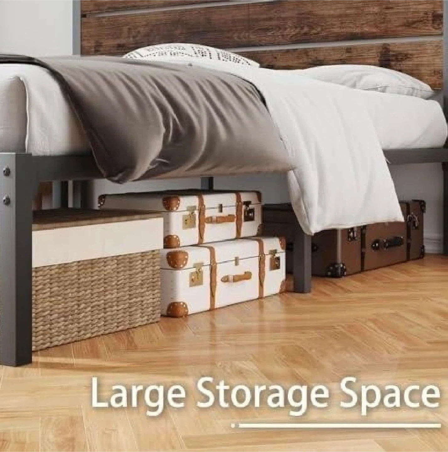 Queen Industrial Metal Bed Frame– Rustic Brown