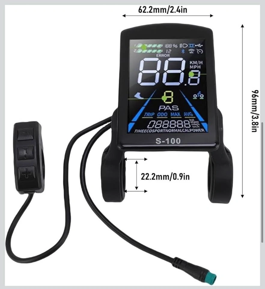 Electric Bike LCD Display, Color Screen, 22.2mm Handlebar Mount
