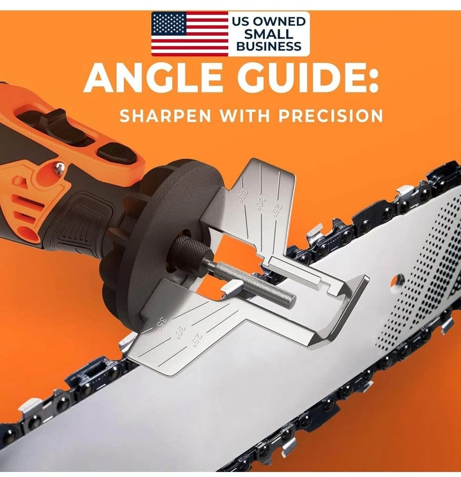 This Sharp Pebble electric cordless chainsaw sharpener kit is your portable solution for sharpening chainsaws anywhere, anytime. This kit includes a Cordless Chainsaw Tool, Chainsaw Angle Guide attachment, Wrench, and 4 Sharpening Wheels (5/32”, 3/16”, 7/32” & 7/32”). Perfect for sharpening any chainsaw chain on the go. Designed for ease of use, this cordless electric chainsaw sharpener allows both novices and professionals to quickly sharpen chainsaw chains. Its ergonomic design and chain angle guide ensure the maintenance of the correct angle during sharpening, regardless of being right or left-handed—now with the freedom of cordless operation. Achieve evenly sharpened chainsaw teeth without the inconsistency of manual files. The cordless sharpener ensures each tooth is precisely sharpened at the same angle and depth, providing a razor-sharp finish. Simply set the grinding angle and cycle through the chain, ensuring uniform sharpness across all teeth. With adjustable speed settings, the cordless chainsaw sharpener delivers a clean, precise finish on each tooth. The high-quality bearings in the motor design ensure the cutting disc operates with great stability and accuracy, saving you time and extending the life of your chainsaw without being tethered by a cord. A dull chain can compromise safety and efficiency. Feel free to message if you have any questions!