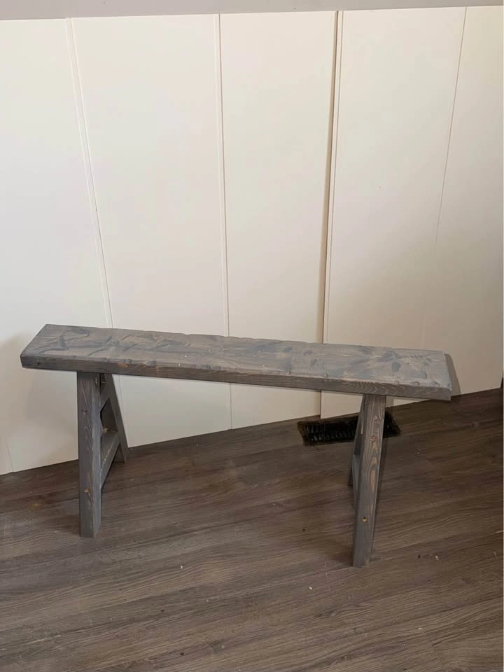 Handmade skinny decorative wood bench, hand-carved and built by me. This bench is designed as a decor / accent piece, not for sitting. Its narrow profile makes it perfect for styling small spaces and adding character without taking up room.