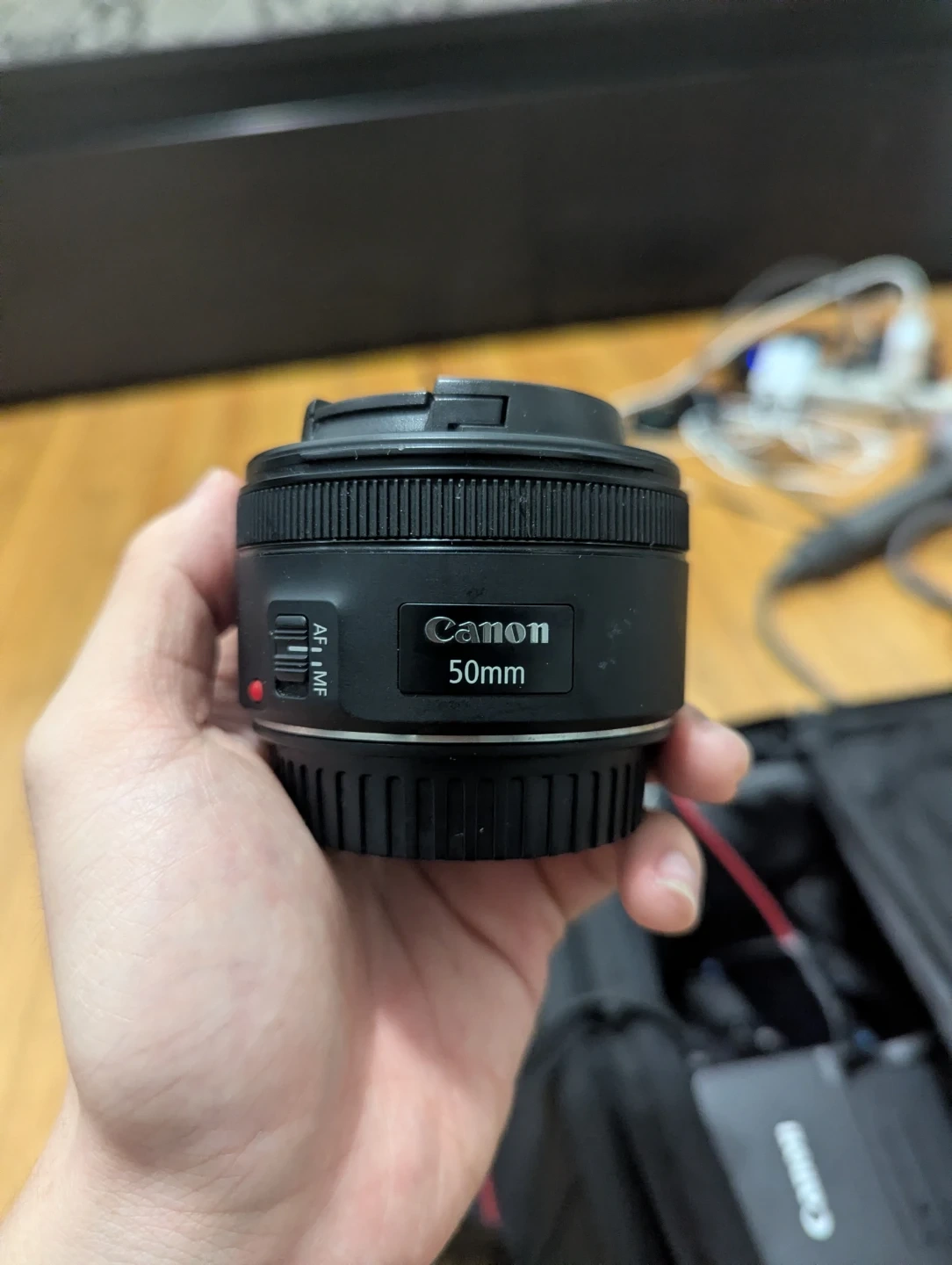 This is a Canon EF 50mm f/1.8 STM lens. It's a popular prime lens for portraits and general photography.