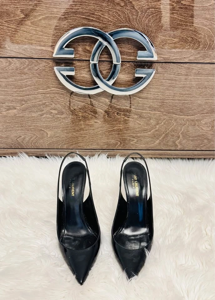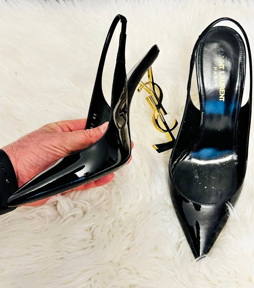 Saint Laurent Black YSL Heel Shoes