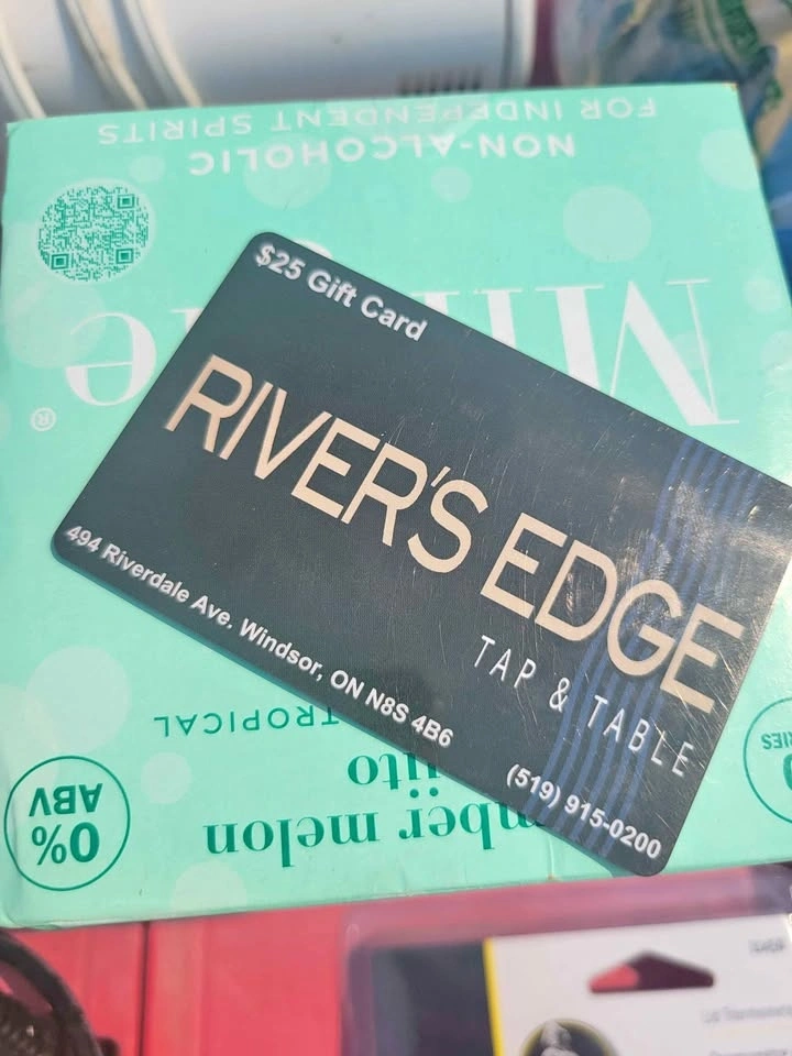 Buy & SellRivers Edge Gift Card ($25) + Mocktail 4 PackRivers Edge Gift Card ($25) + Mocktail 4 Pack$30Brand new, never used $25 Rivers Edge gift card and 4 pack of mocktails. Perfect gift.WHERE TO MEETdowntownView MapSELLERverifiedAmberCity Centre600 reviews0 chats·0 favorites·6 viewsSEND CHAT TO SELLERHi Amber! I’m interested in your listing.Hi Amber! I’m interested in your listing.Get the Karrot app to chatSign In to chat