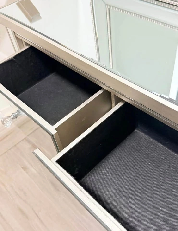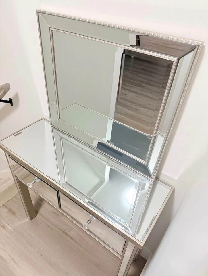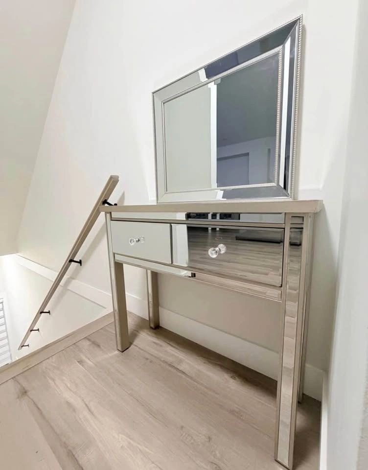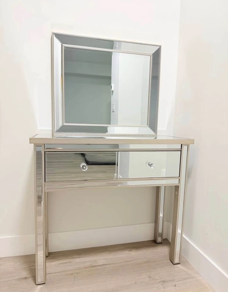 Sleek, modern 2-piece vanity with matching mirror. Excellent condition, clean, sturdy, and well maintained. Paid $700 before tax. Perfect for a modern bedroom or dressing area. Local pickup.