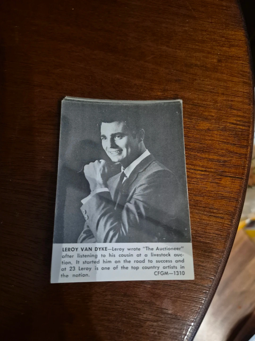 Leroy Van Dyke wrote "The Auctioneer" after listening to his cousin at a livestock auction. It started him on the road to success. At 23, Leroy is one of the top country artists in the nation. This is the CFGM-1310 release.
