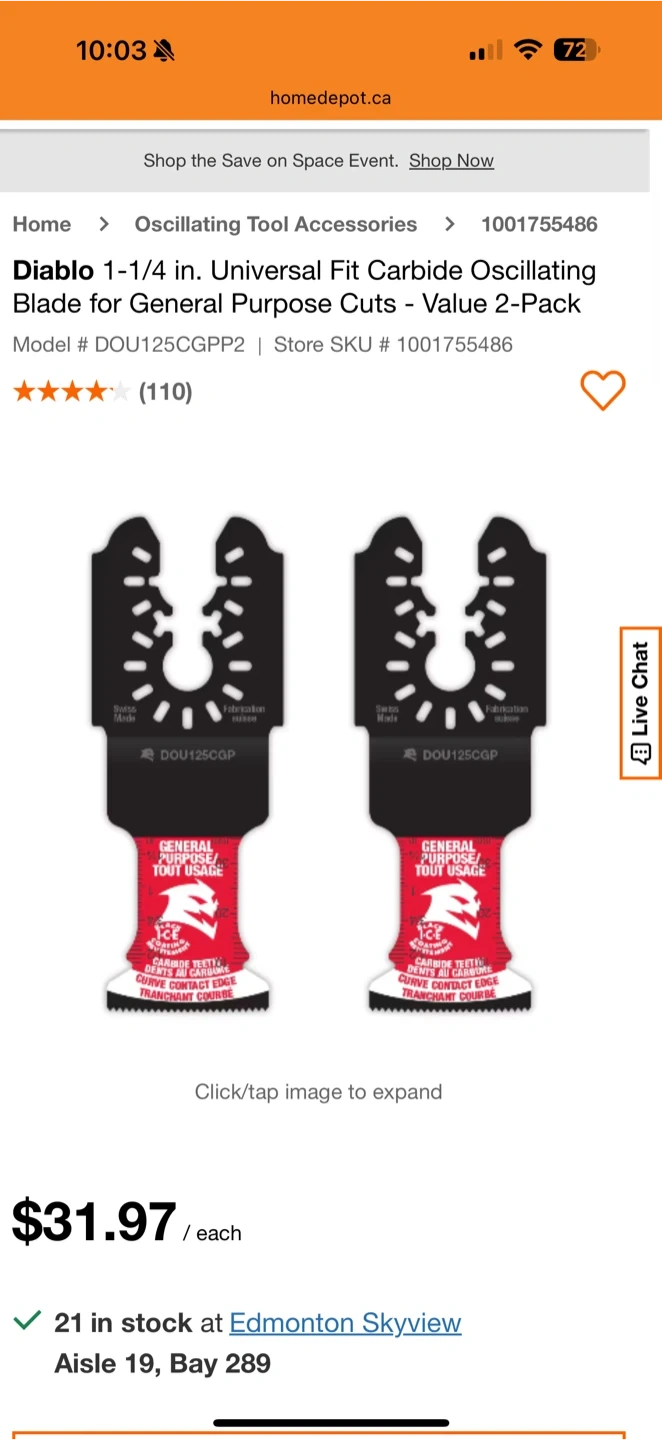 Diablo 1-1/4 in. Universal Fit Carbide Oscillating Blade for General Purpose Cuts - Value 2-Pack