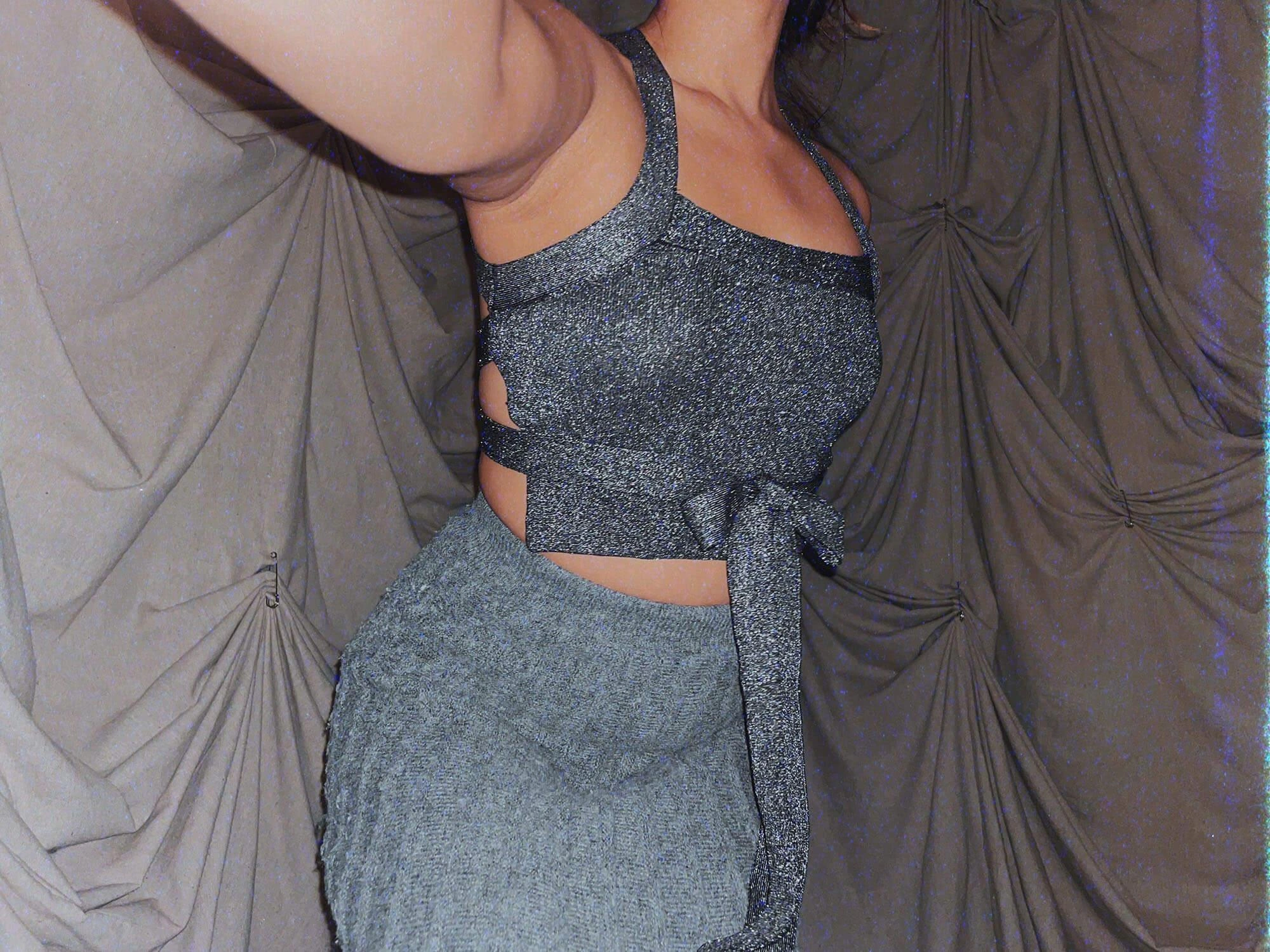 wilfred grey sparkle halter crop top tank shirt