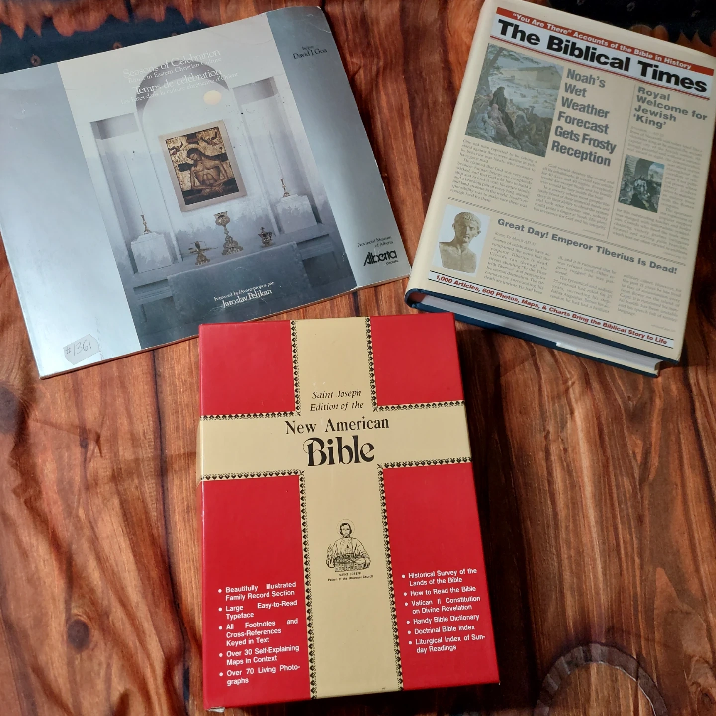 This is a book Lot containing the Saint Joseph Edition of the New American Bible. It features a beautifully illustrated family record section with large, easy-to-read typeface. Includes over 30 self-explaining maps in context and over 70 living photographs.