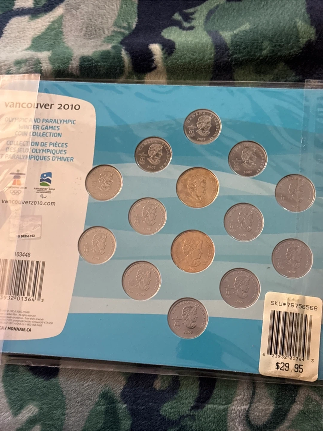 This is a coin collection from the Vancouver 2010 Olympic and Paralympic Winter Games. It includes various Canadian coins celebrating the event. A great collector's item for sports and numismatics enthusiasts!