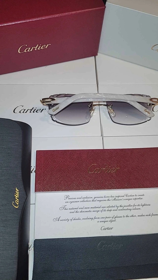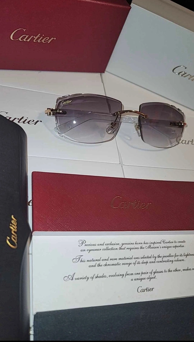 White Cartier frames with Grey diamond cut Cartier lens. Includes box, bag, booklet, cloth, case, and Cartier screwdriver. 🏆