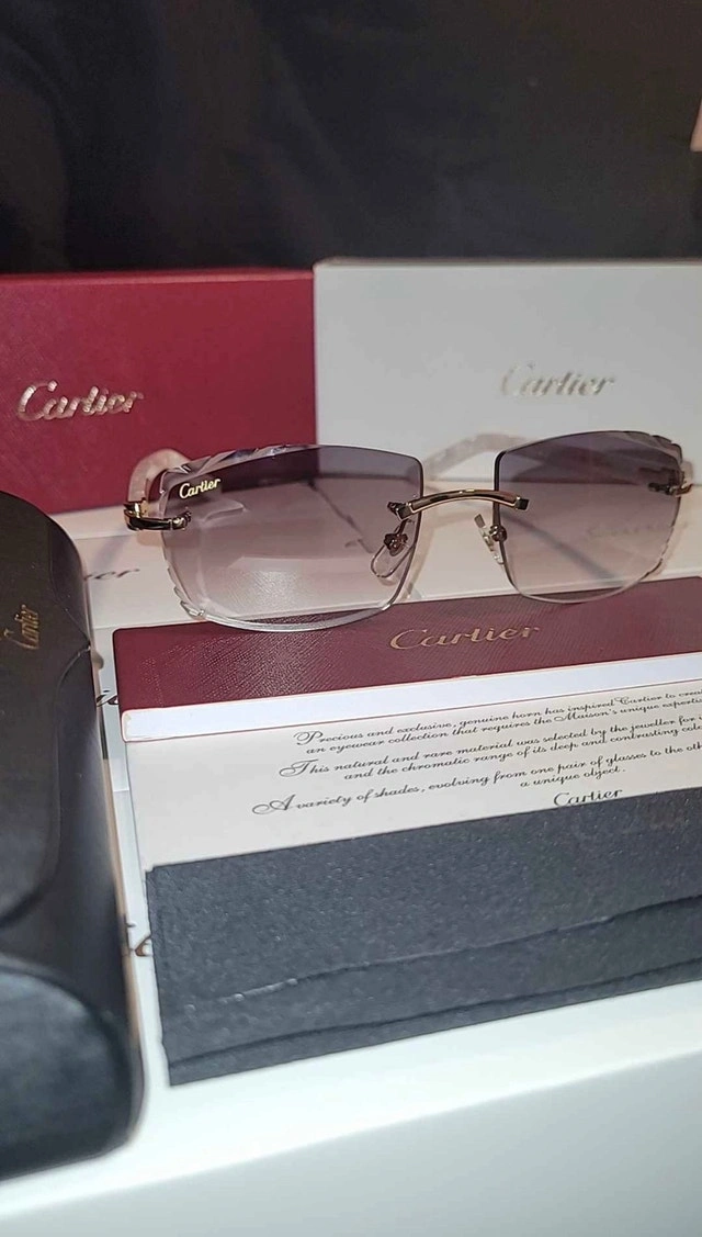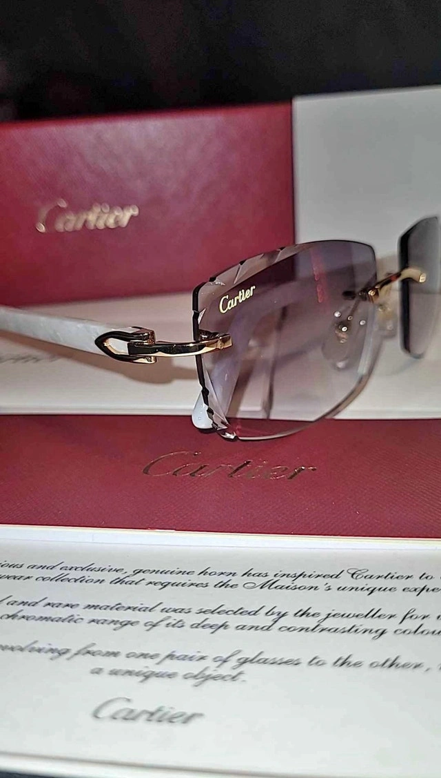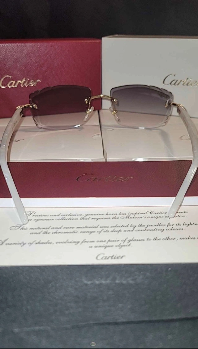 White Cartier frames with Grey diamond cut Cartier lens. Includes box, bag, booklet, cloth, case, and Cartier screwdriver. 🏆