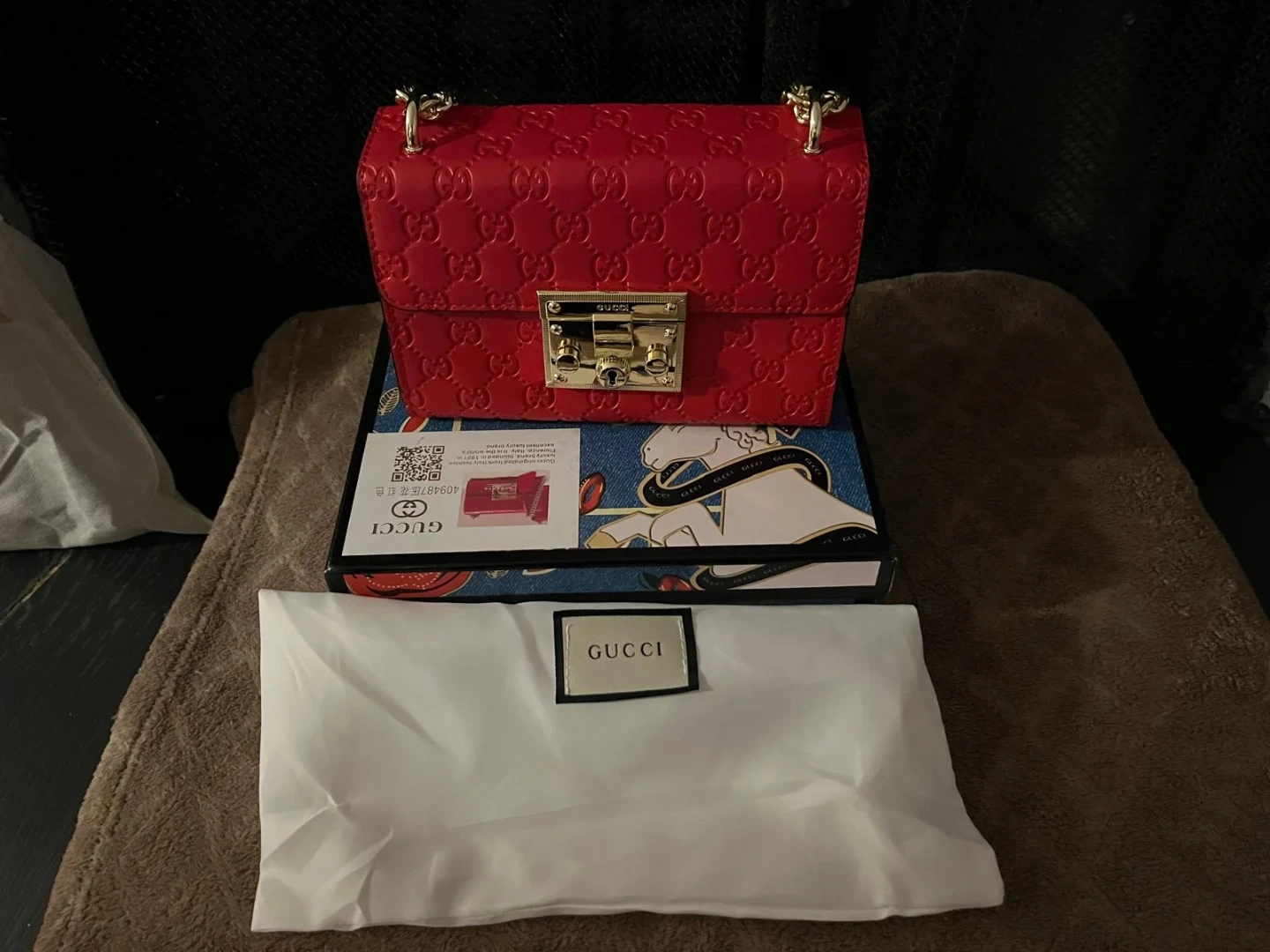 Red Gucci Embossed Chain Bag - FULL SET
