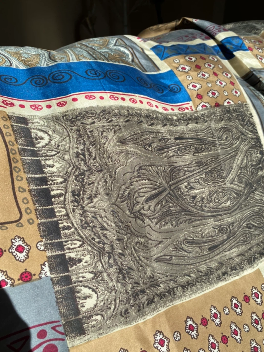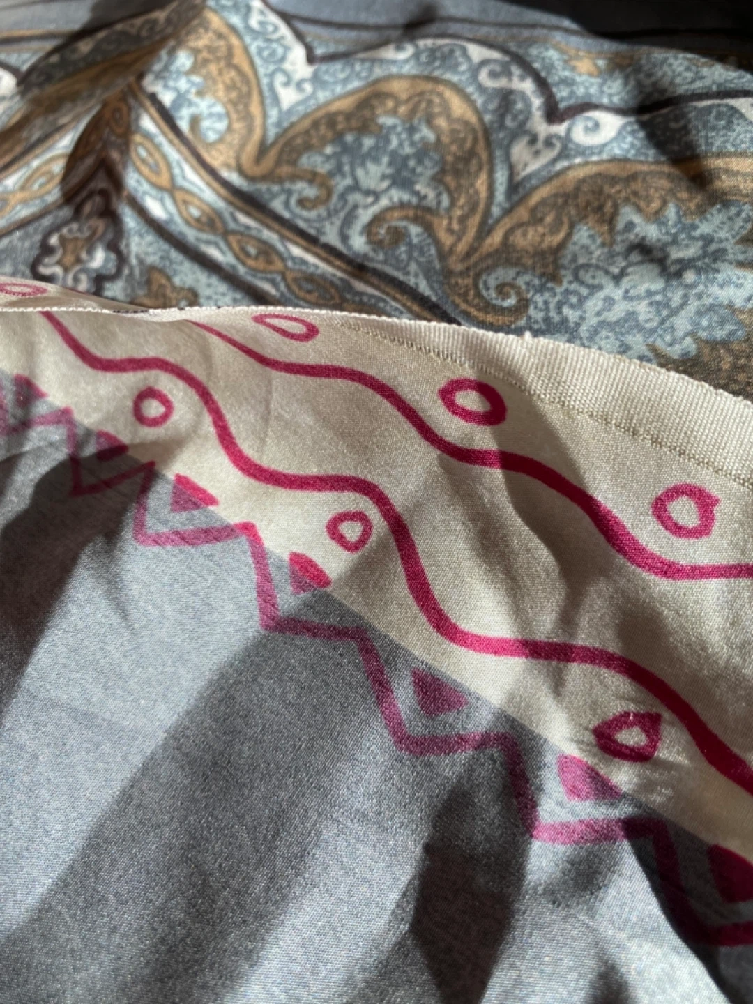 European silk, multi-pattern. 114cm wide, a little over 2 metres long. From a smoke and pet-free home. Pick up in North Glenora area. Shipping available
