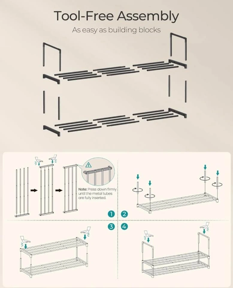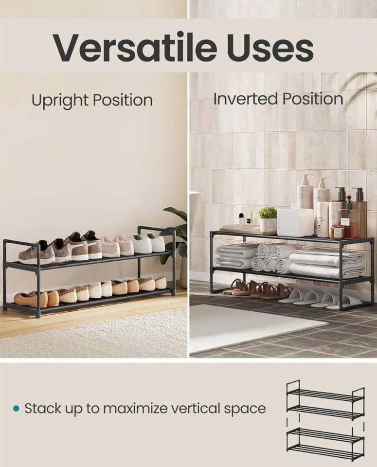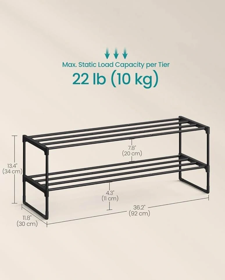 SONGMICS Shoe Rack, 2-Tier Shoe Organizer, Metal Storage Shelf