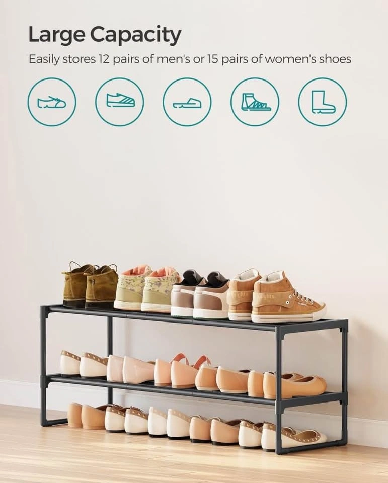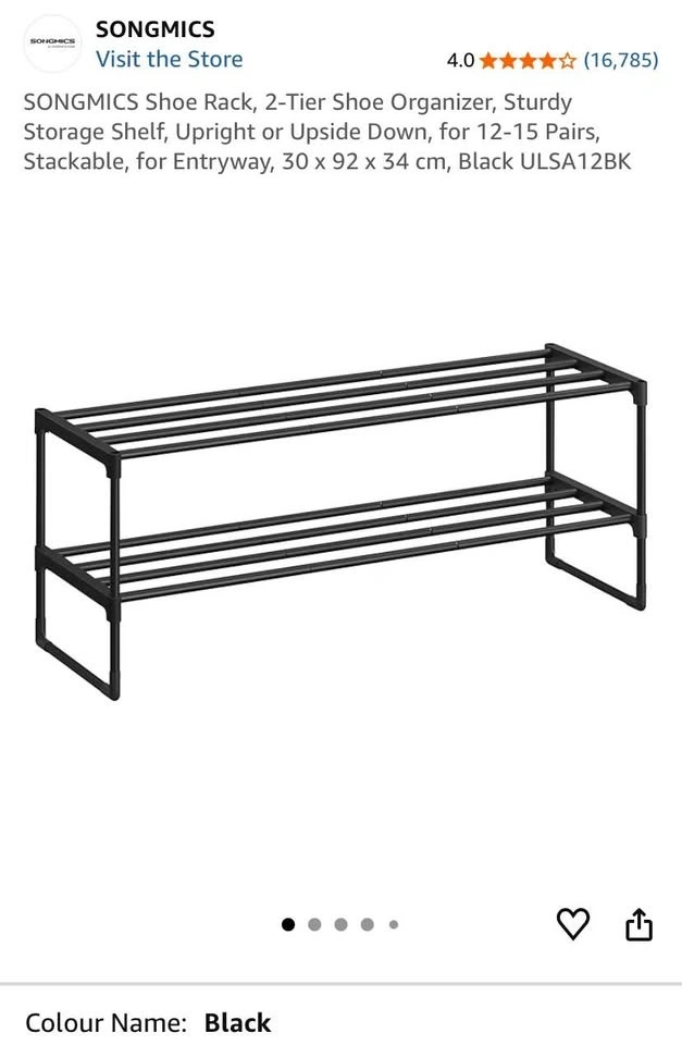 Pick up: Brock Road and Rex Heath Drive in Pickering. 3 in Stock - 3 unassembled. Rack is stackable, buy all 3 and stack for more tiers. Discount available for buying more than one. Organize Your Entryway in Minutes! Keep your home neat and stylish with the SONGMICS 2-Tier Shoe Rack — a sleek, durable solution designed to hold 12–15 pairs of shoes without taking up much space. Strong Metal Frame – Built to last. Stackable Design – Expand as your collection grows. Flexible Setup – Use upright or upside down. Space-Saving – Perfect for entryways, closets & bedrooms. Modern Black Finish – Matches any décor. Compact Size: 11.8" x 36.2" x 13.4". Ideal for sneakers, flats, boots & more! Say goodbye to clutter and hello to a cleaner home.