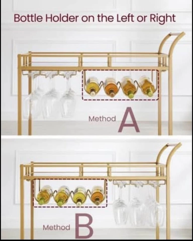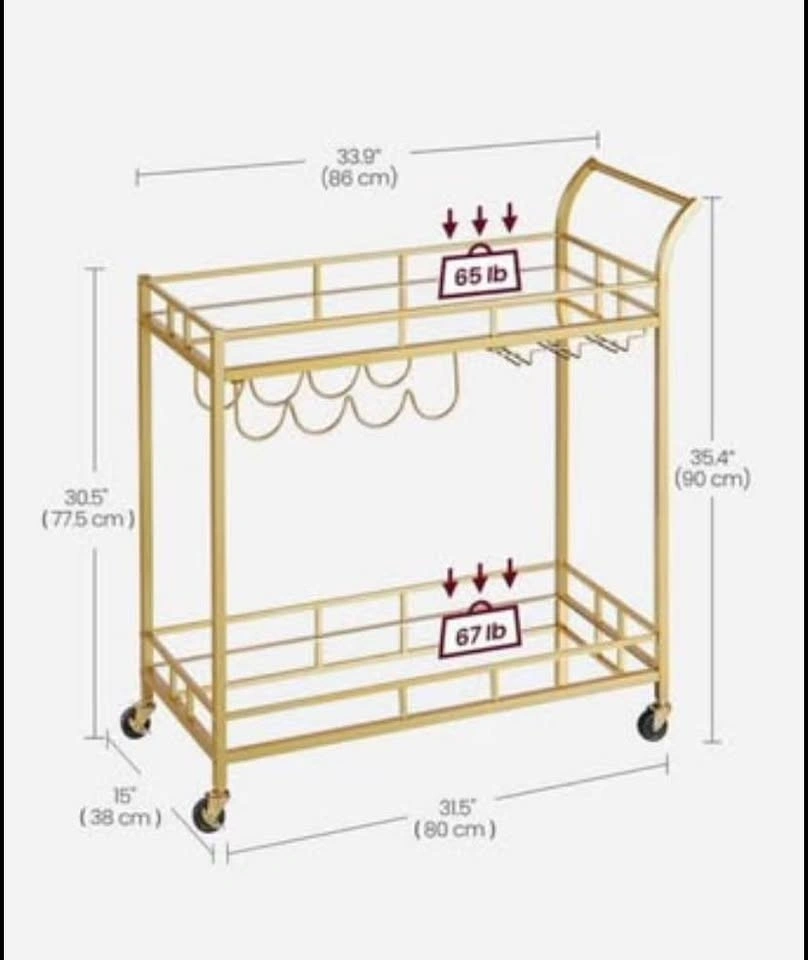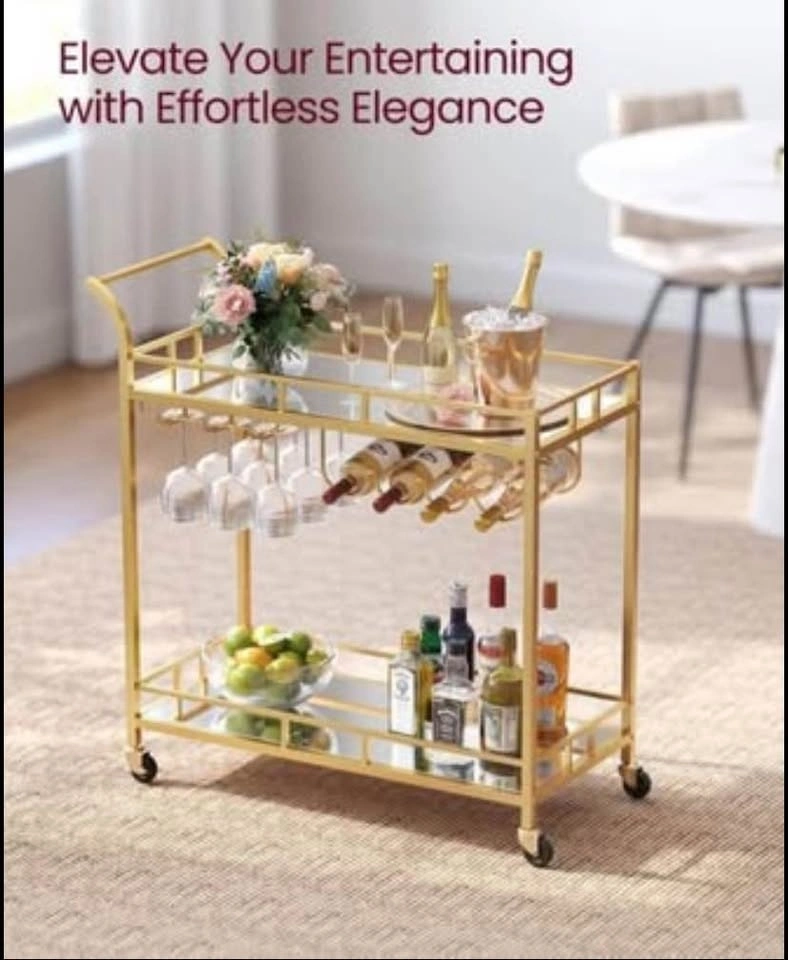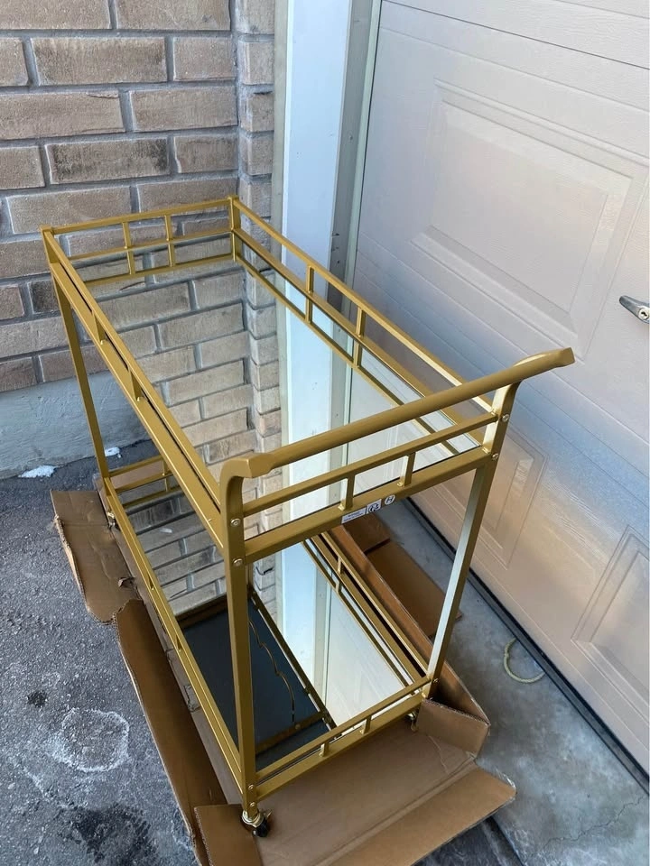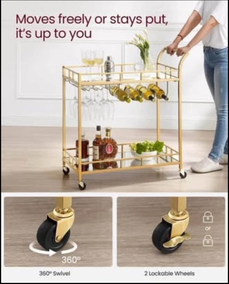 Pick Up: Brock Road & Rex Heath Drive, Pickering. No Holds. VASAGLE Gold Bar Cart with 2 elegant mirrored shelves for bottles, glasses & décor. Built-in wine rack & glass holder. Smooth-rolling wheels for easy serving. Perfect for home bar, kitchen, or dining room. Modern gold finish – stylish & functional.