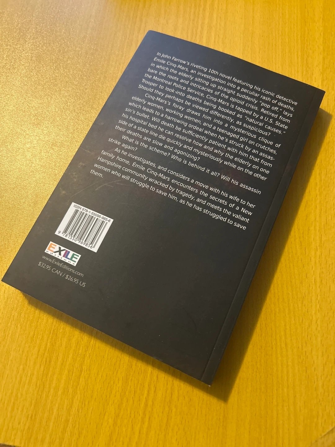 This is John Farrow's novel, 'A Patient Death', part of the Emile Cinq-Mars series. It's a paperback edition. This crime thriller is a great read for fans of the genre!