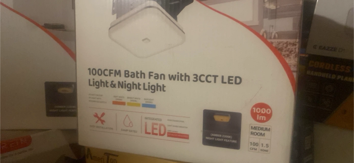$100 OREiN 3-in-1 Bathroom Exhaust Fan with Light & Humidity Sensor, 160 CFM, 1500LM, 3000K/4000K/5000K, 2200K Night Light, Auto-On at 60% Humidity, ETL & FCC Certified, Cut-Out 11.81" x 11.02"