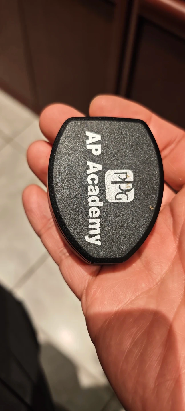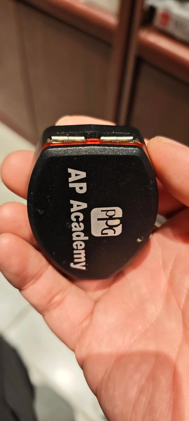 This is a PPG AP Academy Dual USB AC DC adapter. It's model number is STU-02. It operates on 100-240V AC input and outputs 5V DC, 1A. It has dual USB ports. The adapter has an LED status indicator.