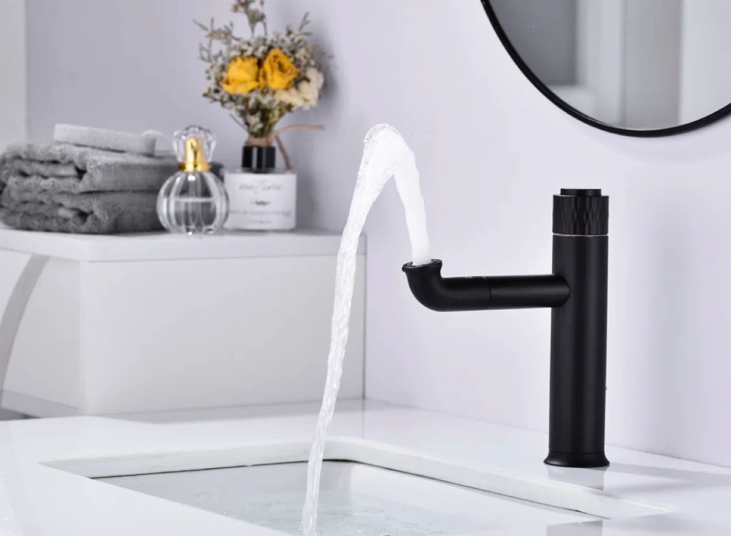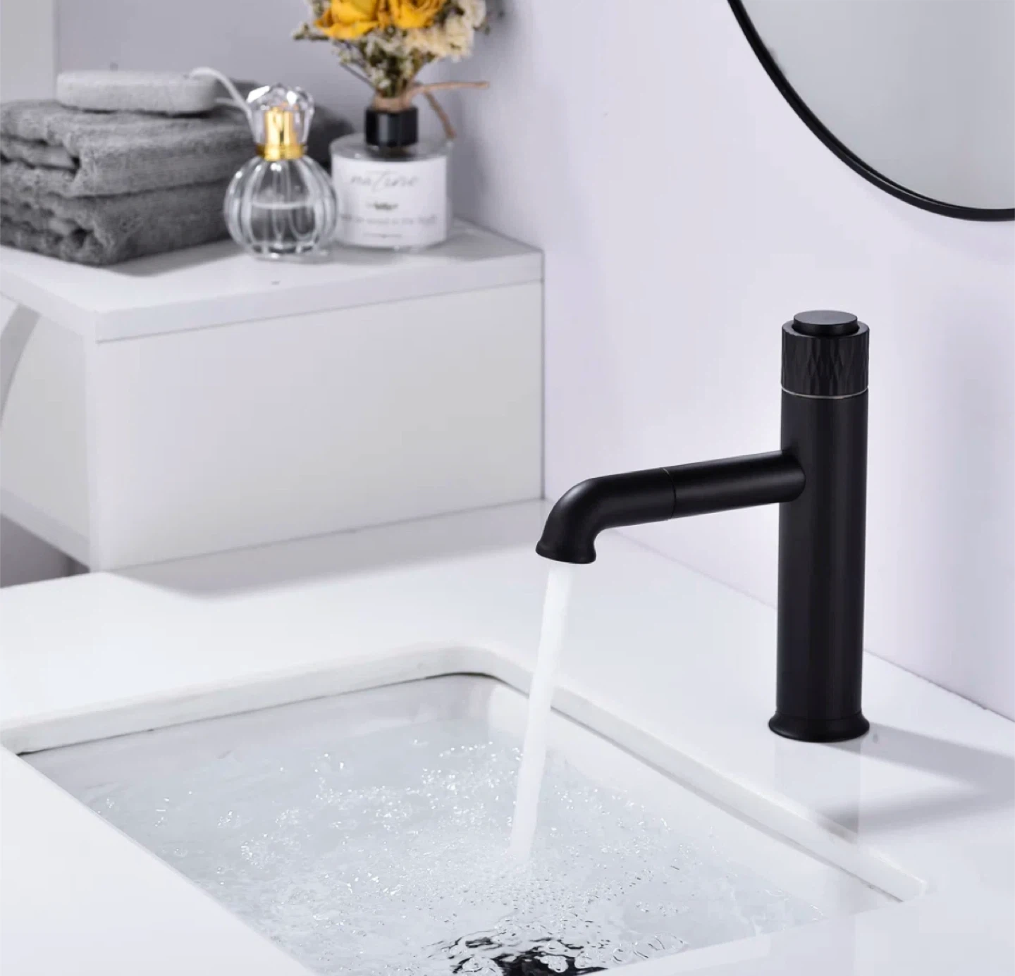 Black Basin Faucet with Pop-Up Drain Assembly
