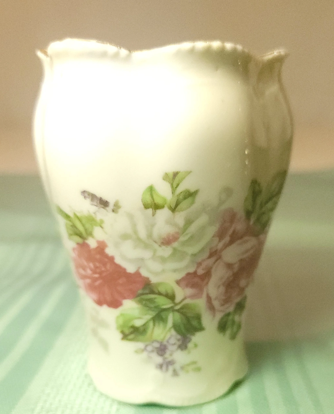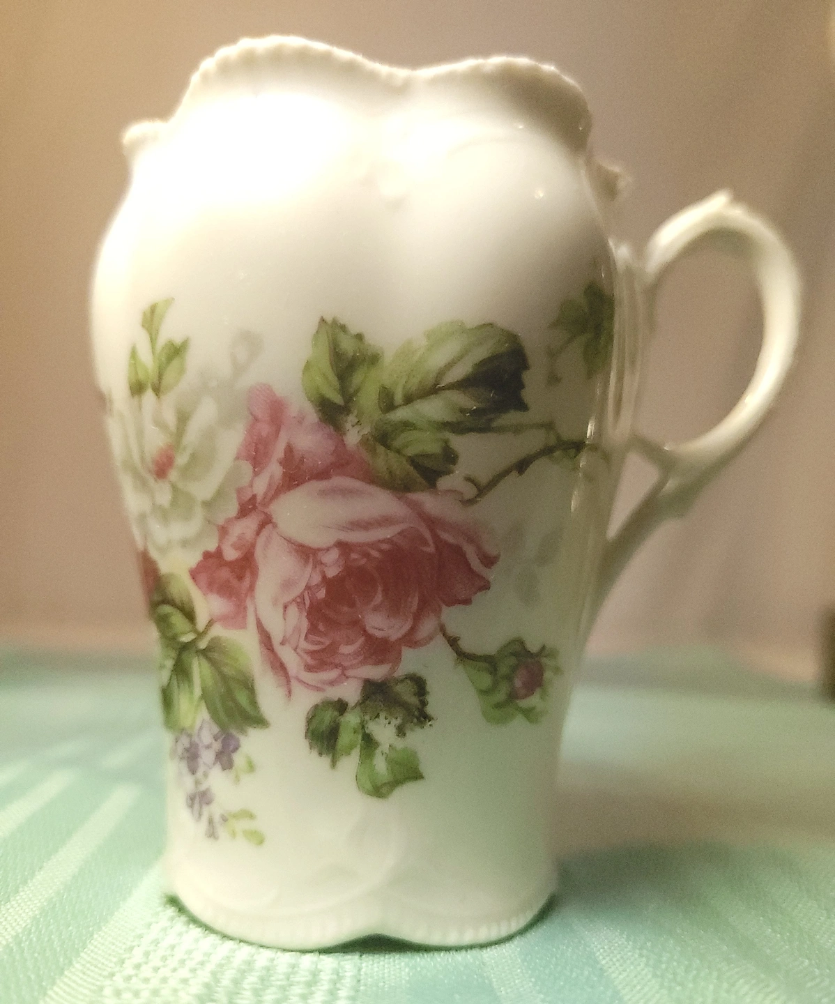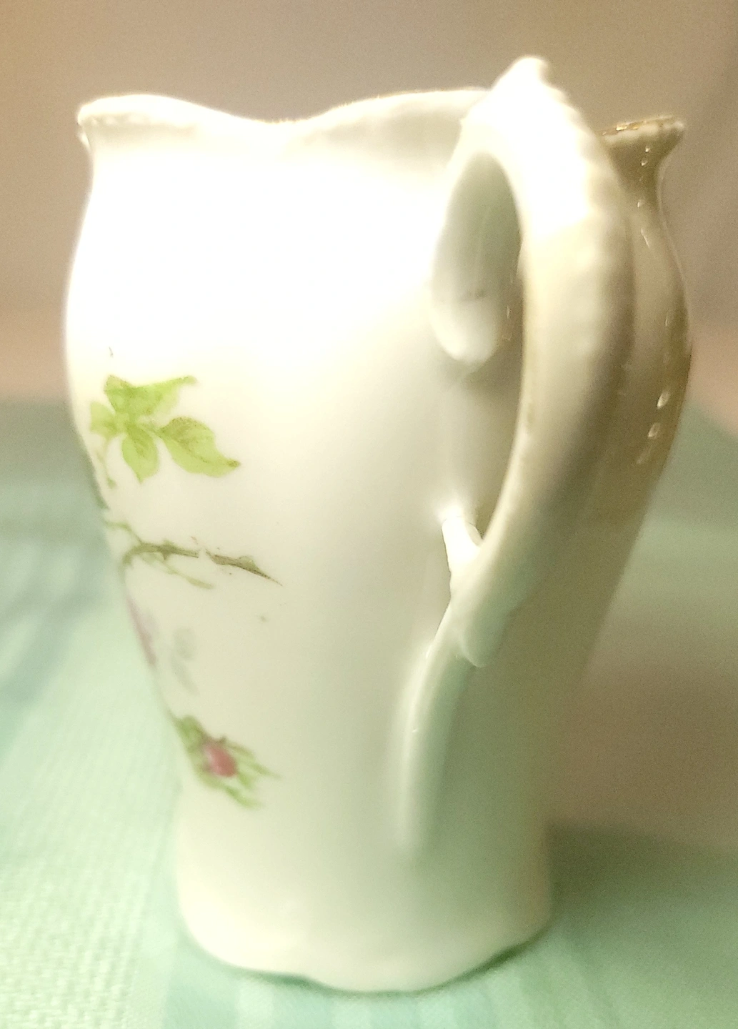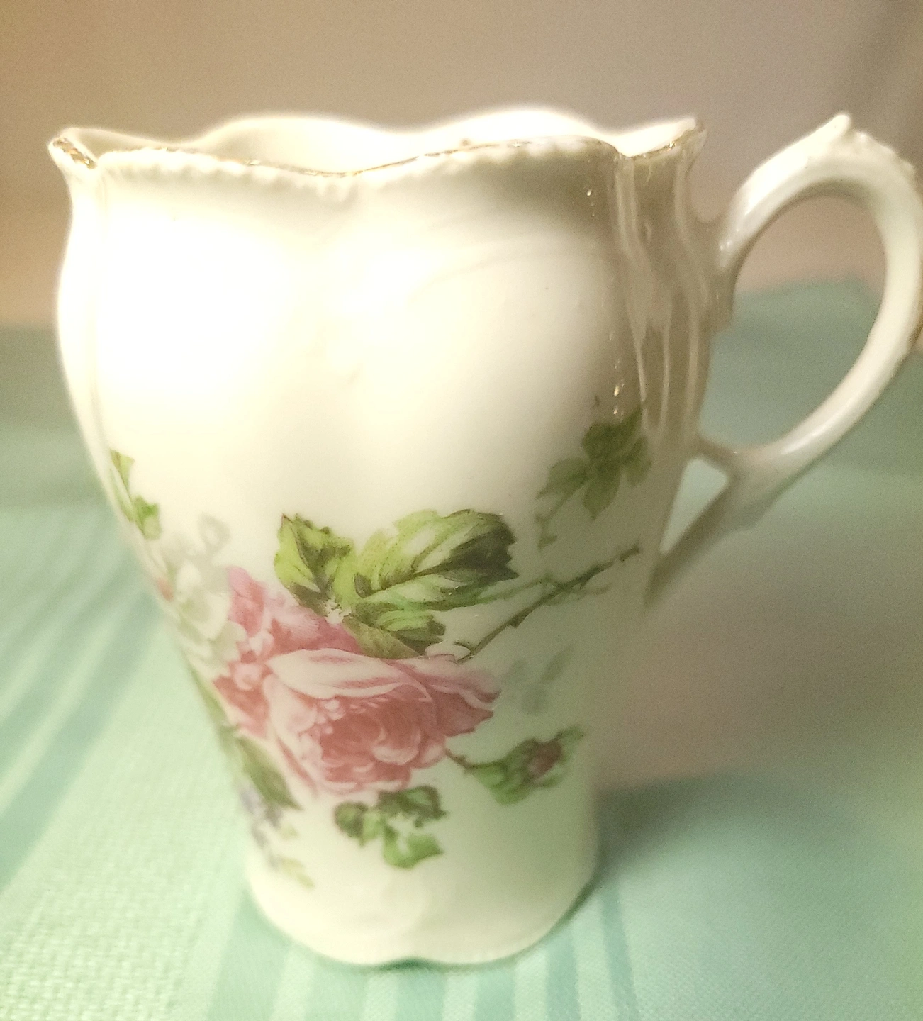 1950s Porcelain Creamer - Pink Moss Rose Pattern, Scalloped Gold