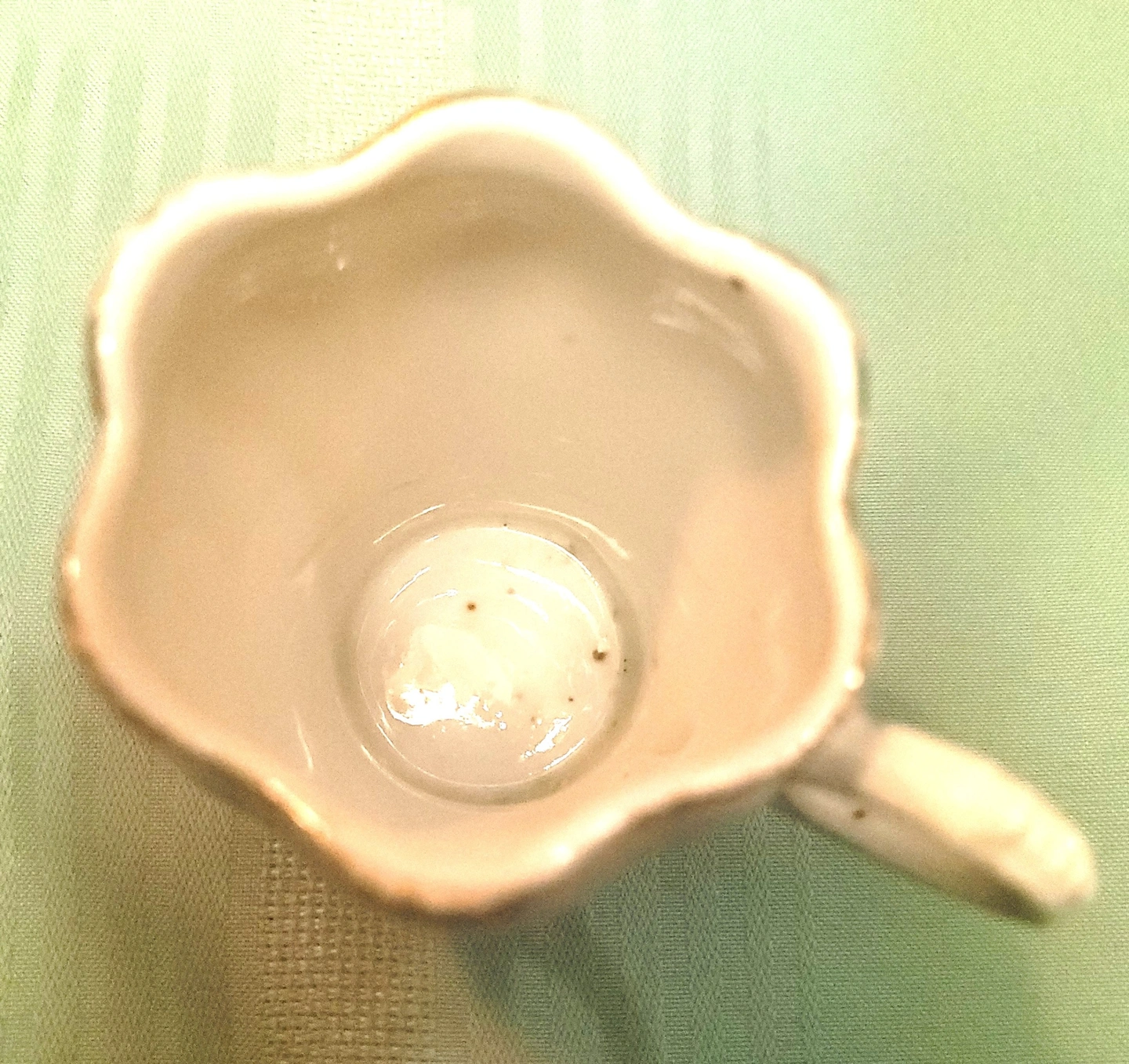 Condition: This item is in good vintage condition with light wear. There are no chips, cracks, or crazing. The gold gilding remains vibrant with only very minimal thinning on the handle's thumb rest, typical for a piece of this era.