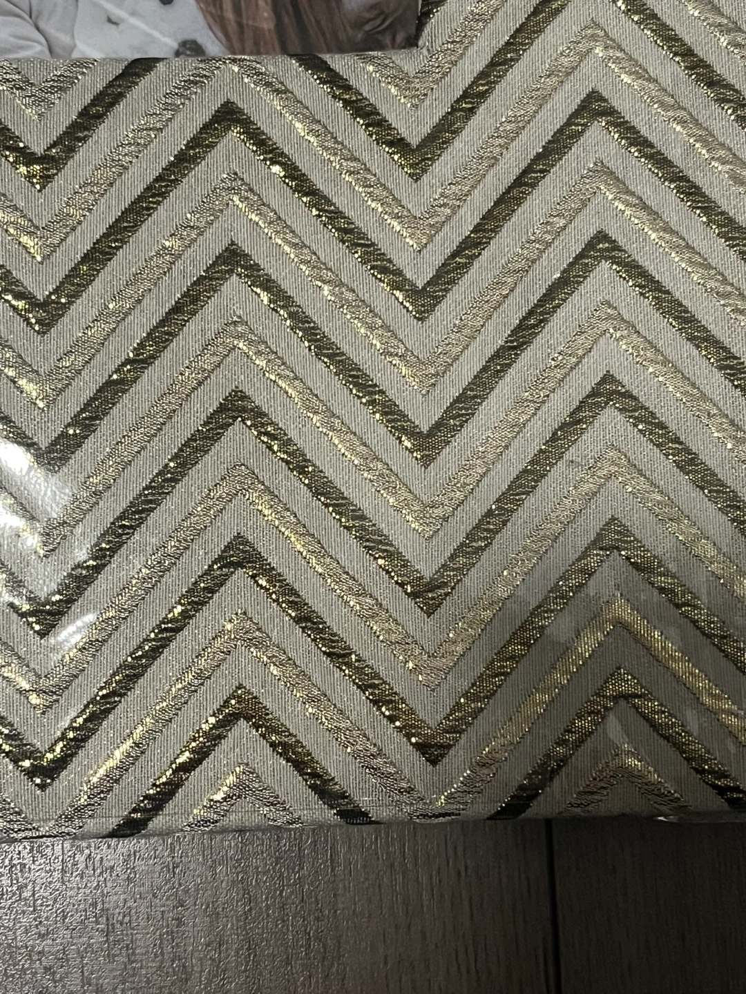 This Recollections scrapbook measures 12 by 12 inches and comes with 10 pages. It has a gold and cream chevron pattern with a photo frame on the front. Perfect for preserving memories!