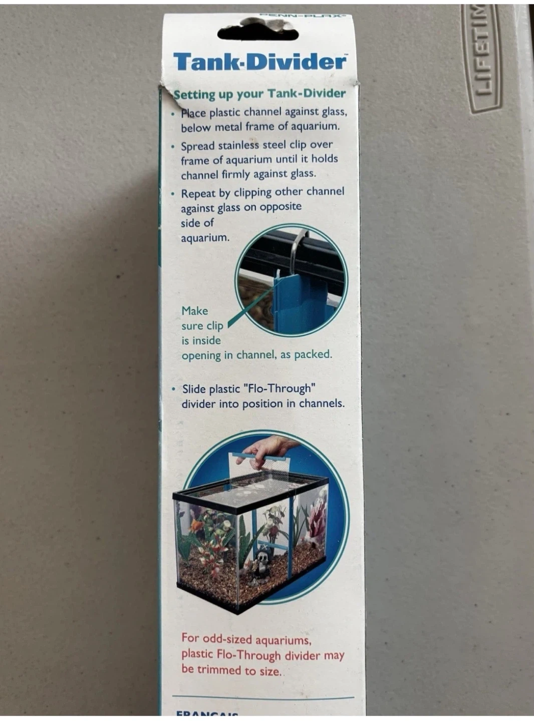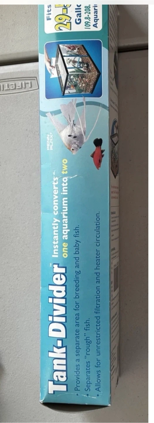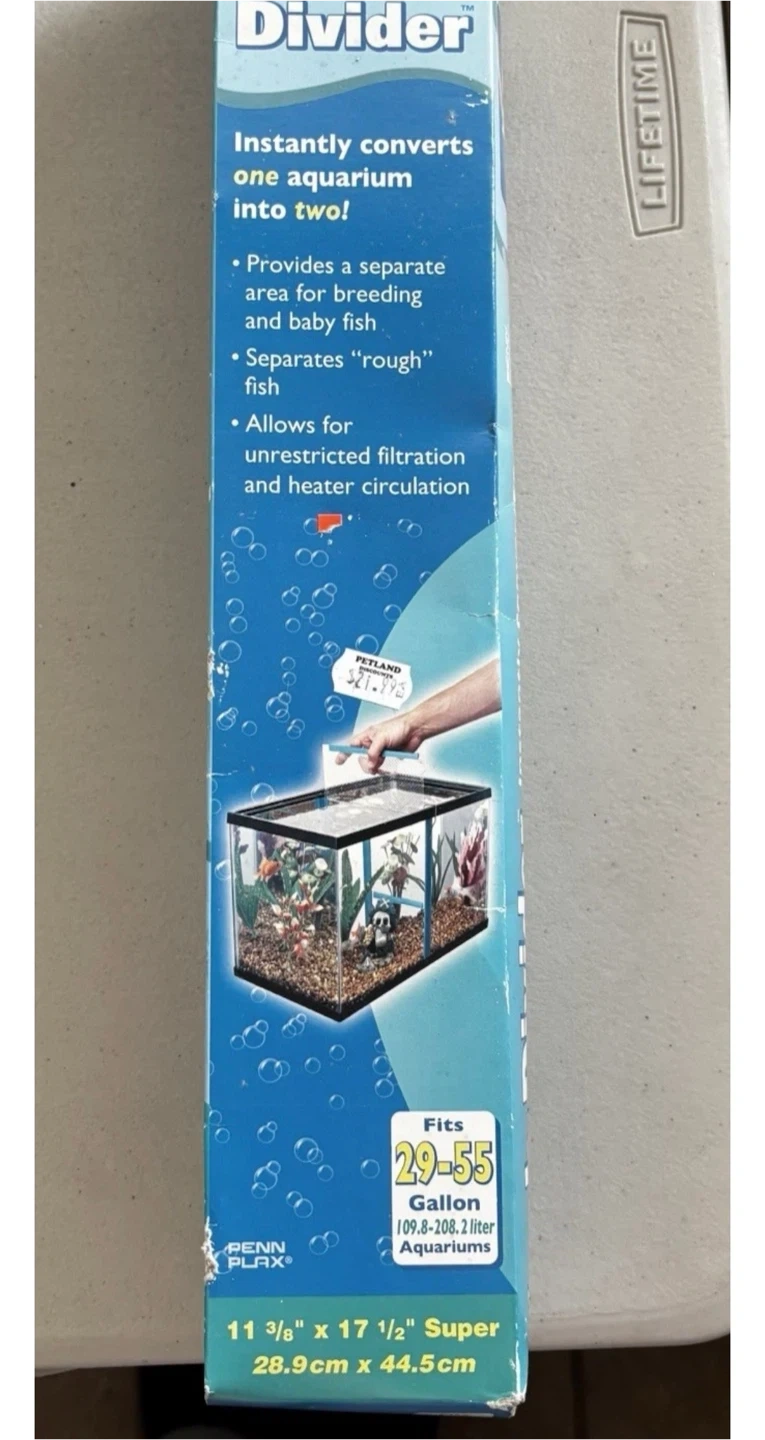 This tank divider instantly converts one aquarium into two. It provides a separate area for breeding and baby fish, separates aggressive fish, and allows for unrestricted filtration and heater circulation. Fits aquariums from 29-55 gallons. Dimensions: 11 3/8" x 17 1/2".