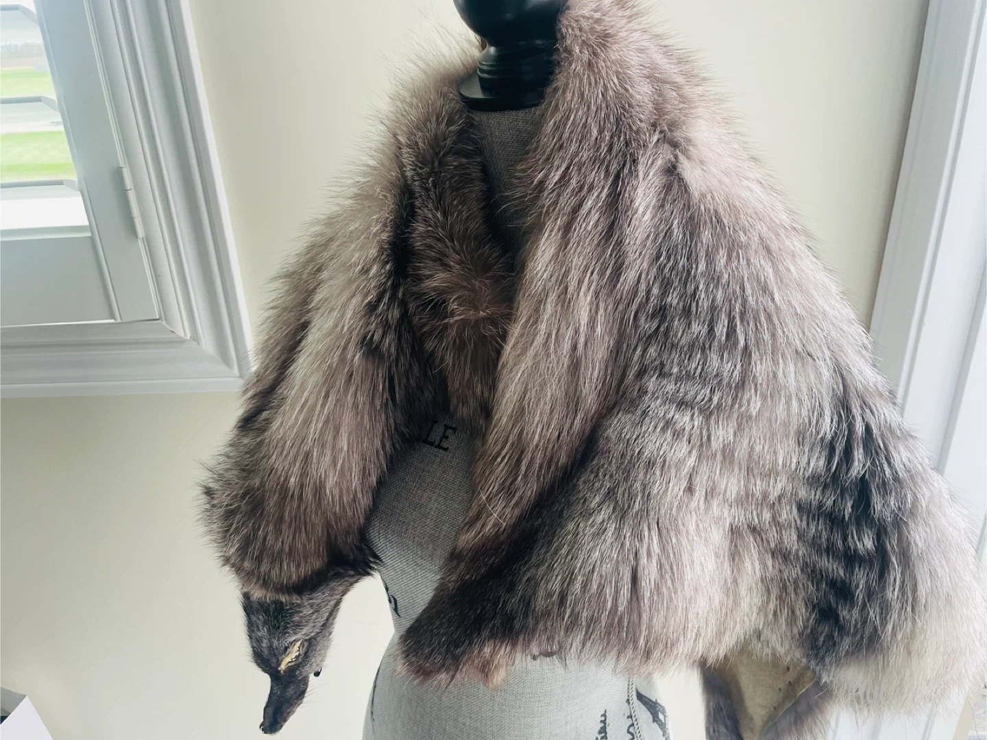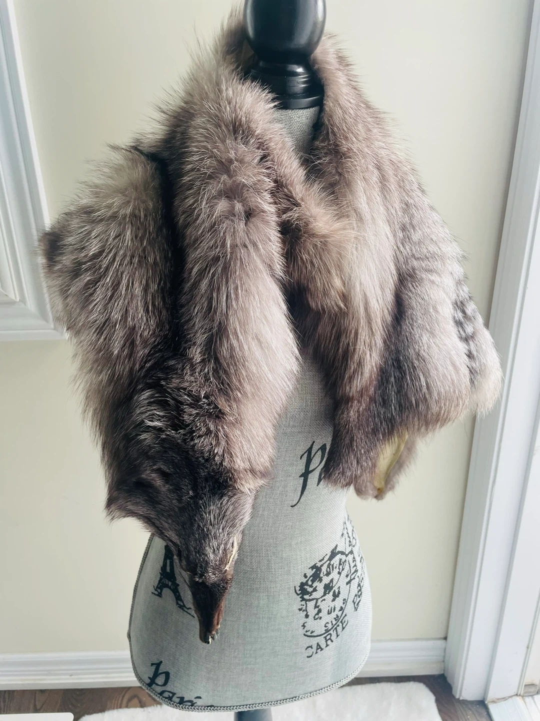 A beautiful vintage fox fur stole. It's made of genuine fox fur with a natural colouring. This piece adds a touch of old-world glamour to any outfit. Perfect for special occasions or a statement accessory!
