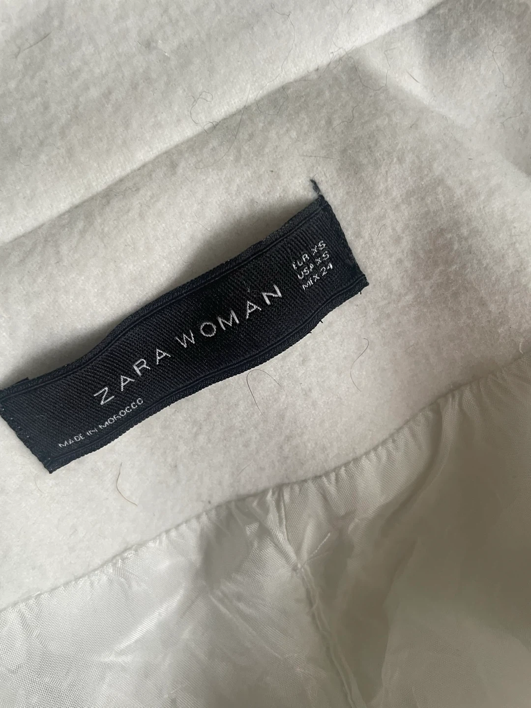 Zara Woman white coat in size XS. Double-breasted style with black buttons. Made in Morocco. It's a stylish outerwear piece for cooler days!