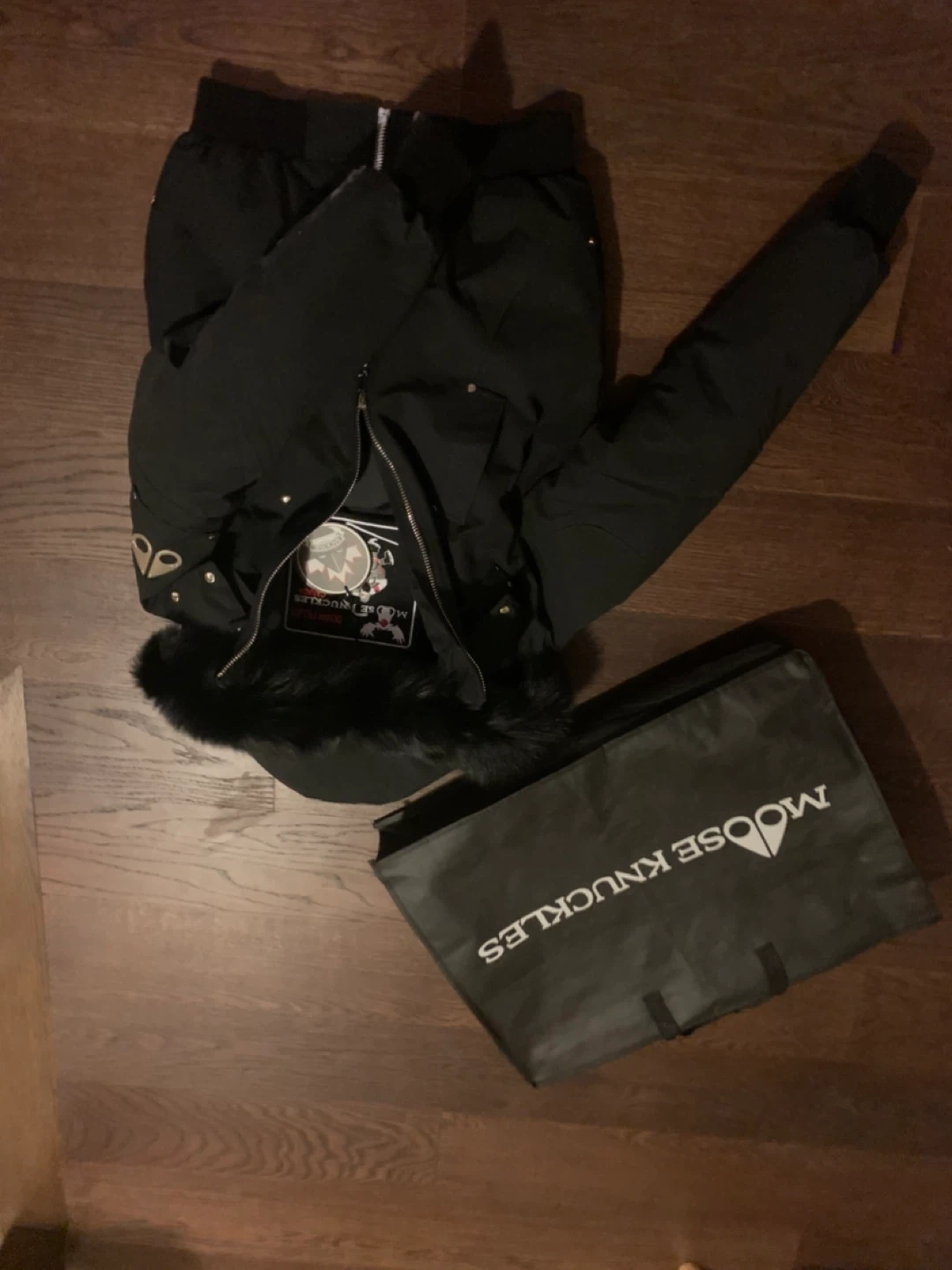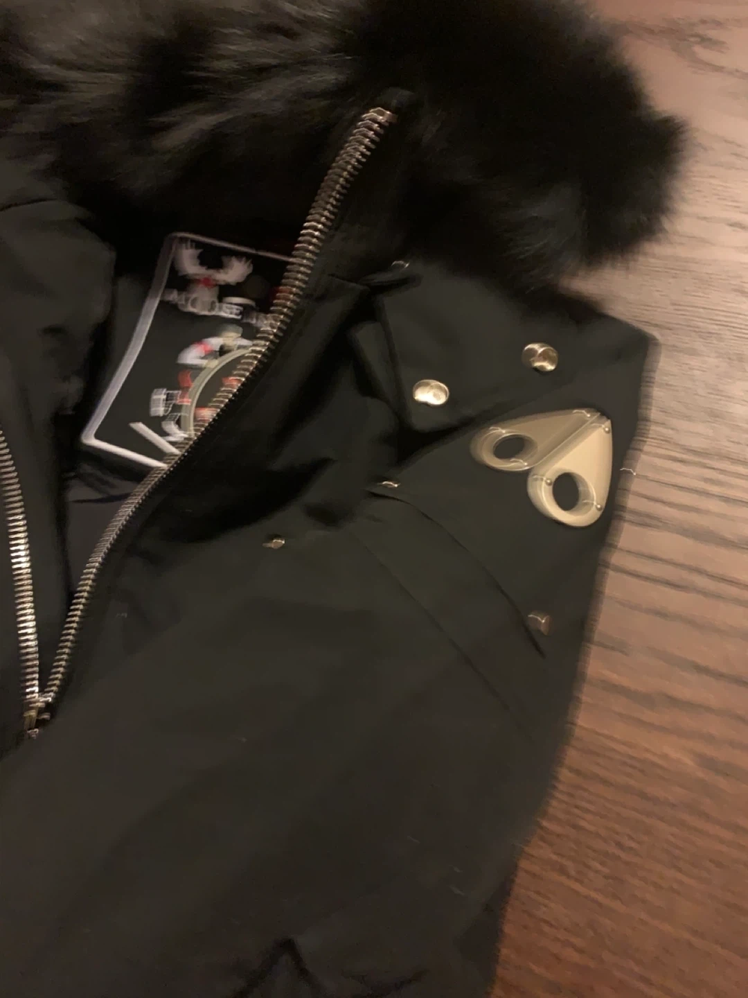 Moose Knuckles Black Puffer Jacket with Fur Hood