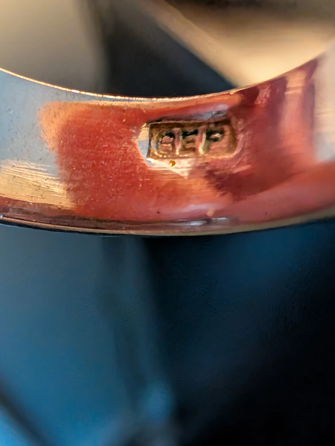 This is a silver-tone ring with two rows of sparkling rhinestones. It has a GEP" stamp inside the band. It's a stylish accessory that'll add a bit of bling to any outfit!