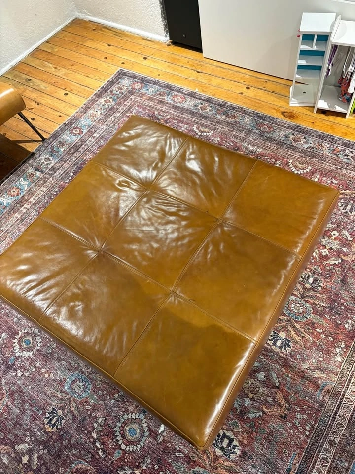Awesome large square leather ottoman in great condition. Clean, non-smoking home. 3’x3’x16”H. Screw in legs for easy transport. Pickup Royal York/Lakeshore area. If ad is up it’s available.
