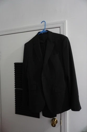 Here's a ZARA Slim Fit Suit Set including a Blazer and Matching Pants in Black. The blazer size is USA 40 / EUR 50 / MEX 50, and it was made in Morocco. This pre-owned set is clean and ready to wear, with no major flaws noticed. Please check all photos for exact condition and details. Feel free to message me if you need measurements (chest, length, waist, inseam).