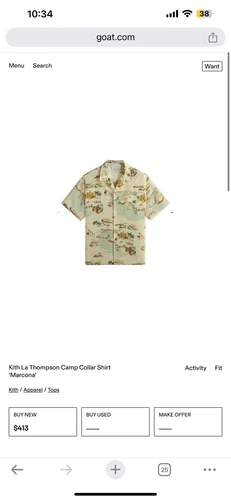 Authentic Kith camp collar shirt from the Klay Thompson collection in the “Marcona” print. Brand: Kith, Collaboration: Klay Thompson, Style: Camp Collar / Resort Shirt, Color/Print: Marcona (all-over graphic print), Size: Men’s Medium (M), Condition: New without tags, Short sleeve button-up. Shirt only, exactly as shown in photos. Message me if you want measurements or more photos.
